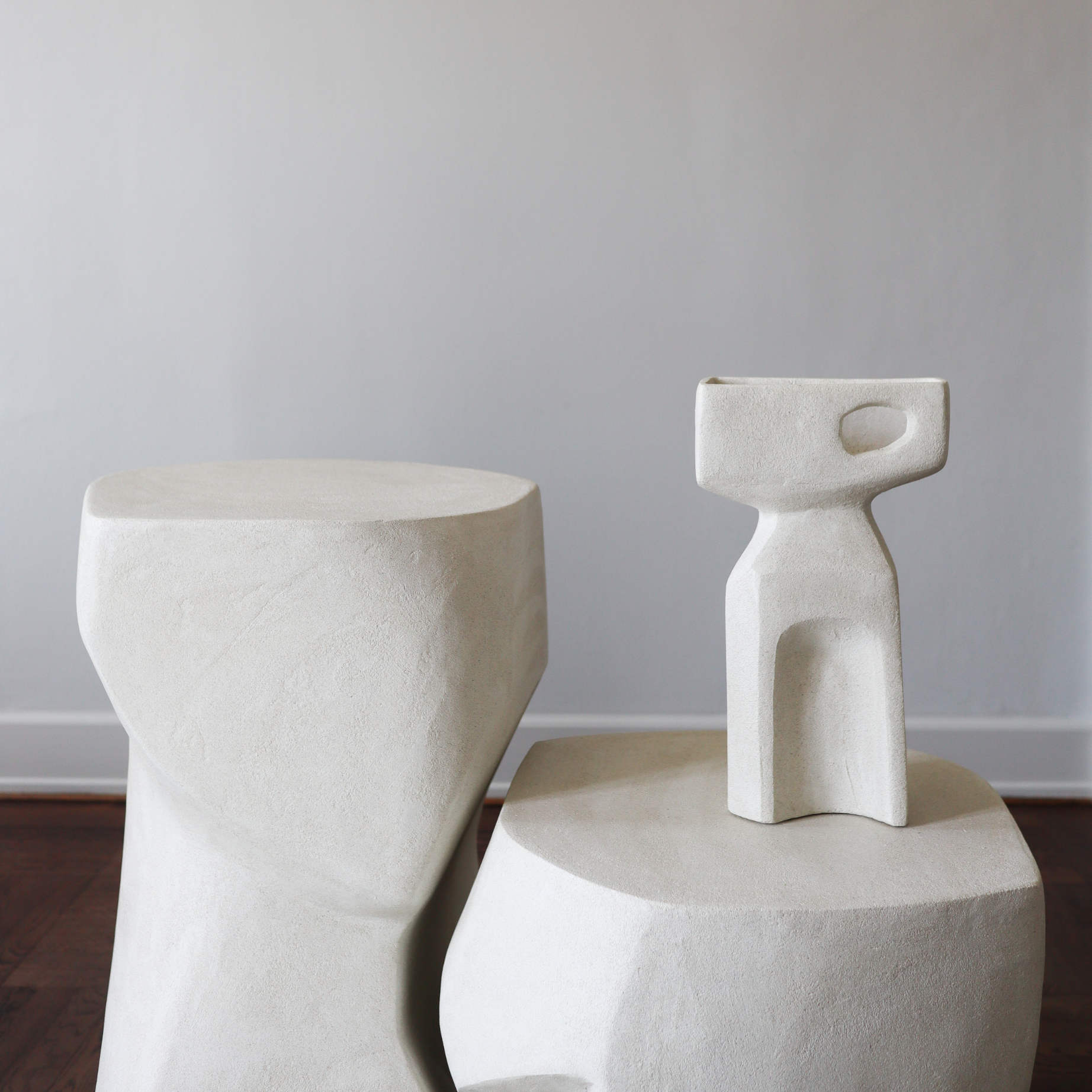 Josefine’s approach is rooted in shape, surface, and spatial awareness. Influenced by her grandfather’s work as a sculptor, her designs carry a quiet tension — a balance between linear and organic, structured and fluid. Her forms feel still yet alive, as if caught mid-movement.