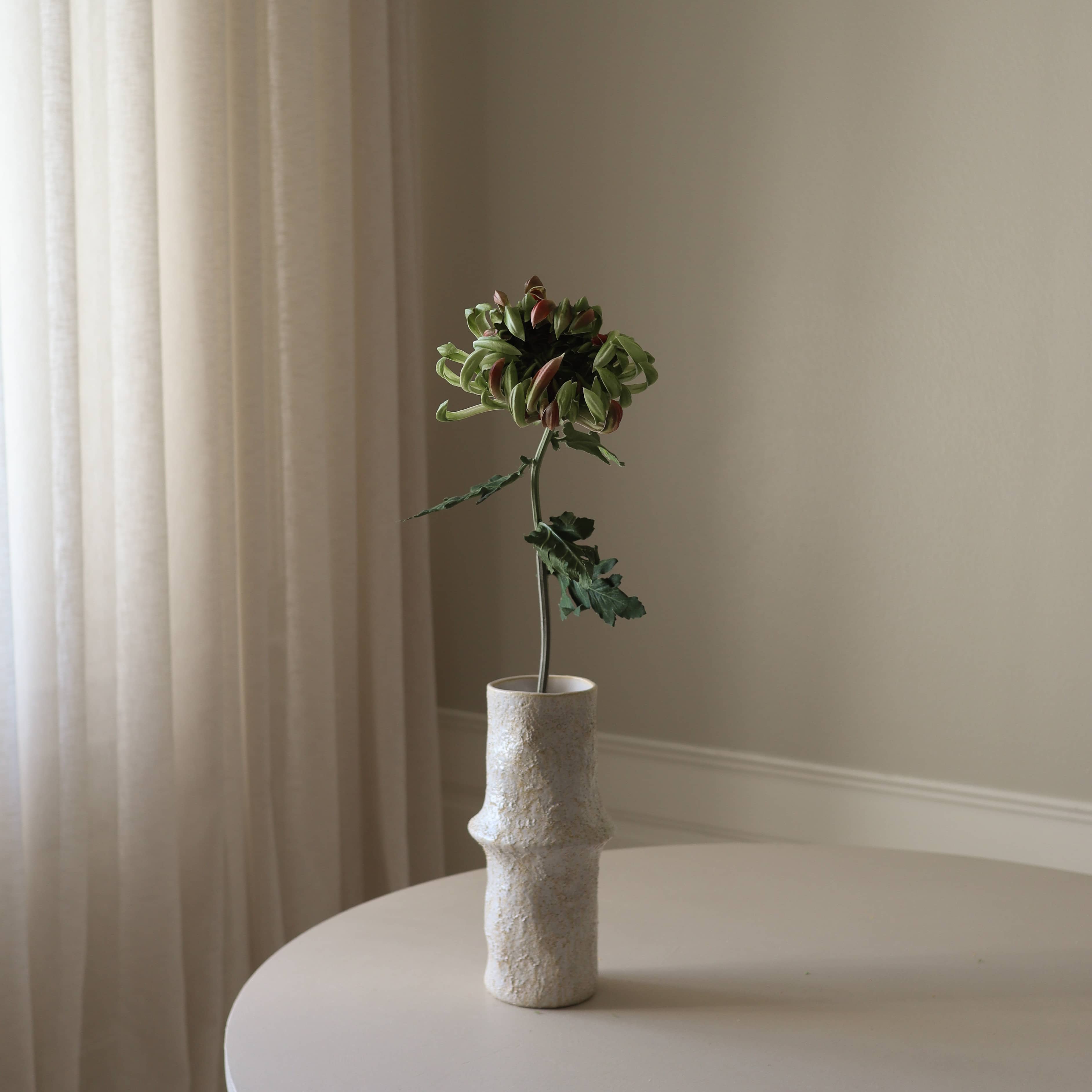 This Green Chrysanthemum Flower features layered petals in a striking blend of green and earthy brown tones.