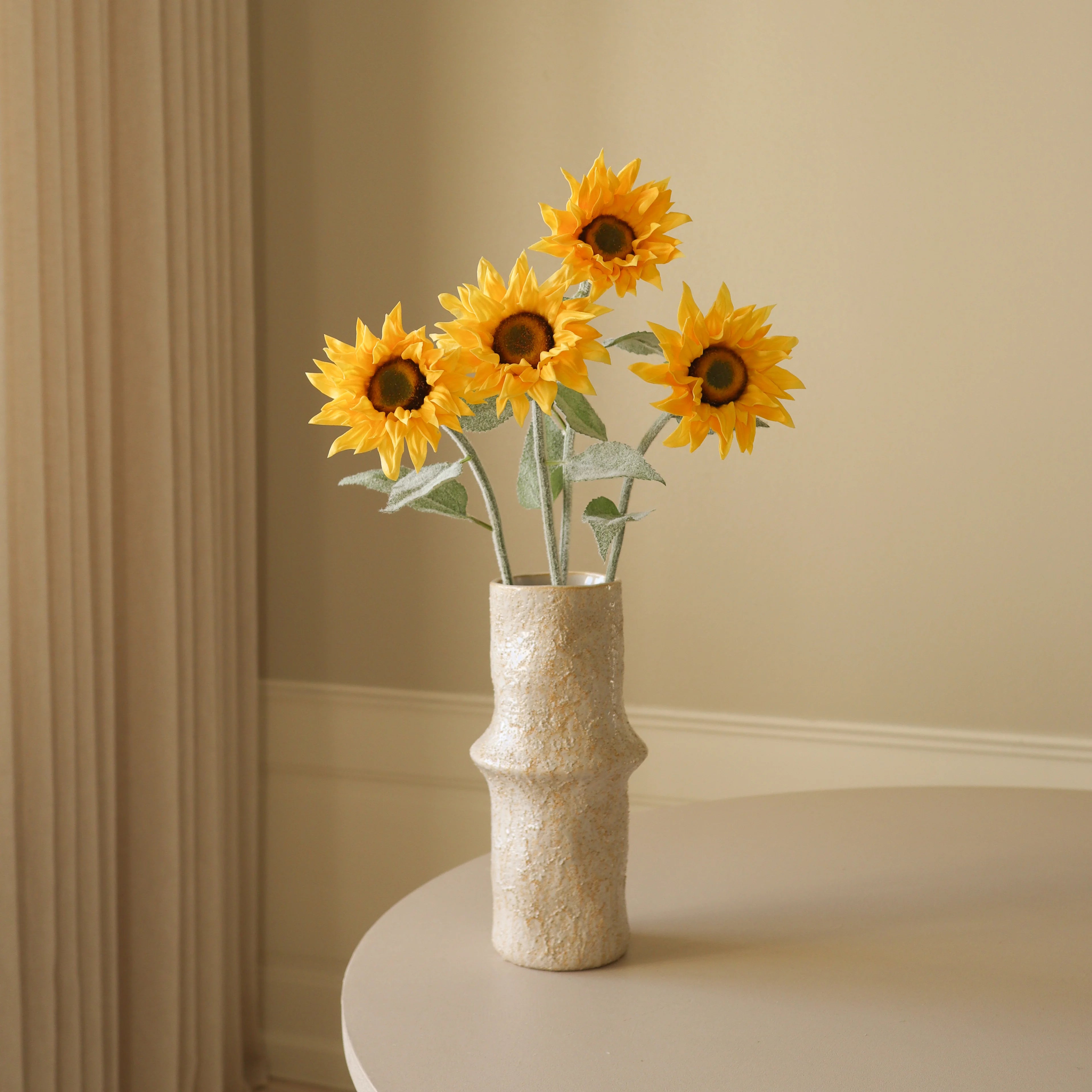 For a more customized fit, trim the stems with cutting pliers as needed. If placing the flowers in a transparent vase, we recommend sealing the cut ends with a glue gun for a polished, natural finish.