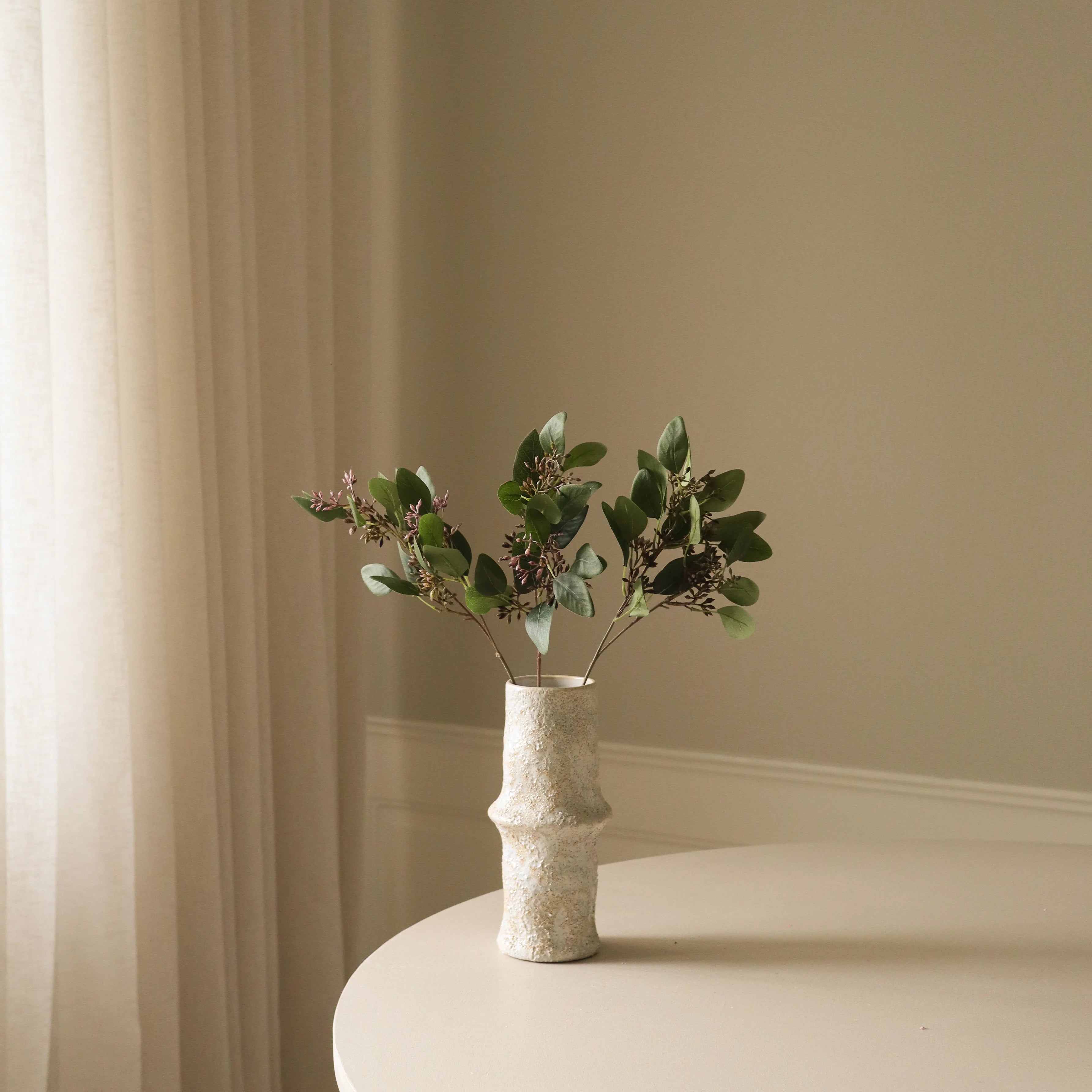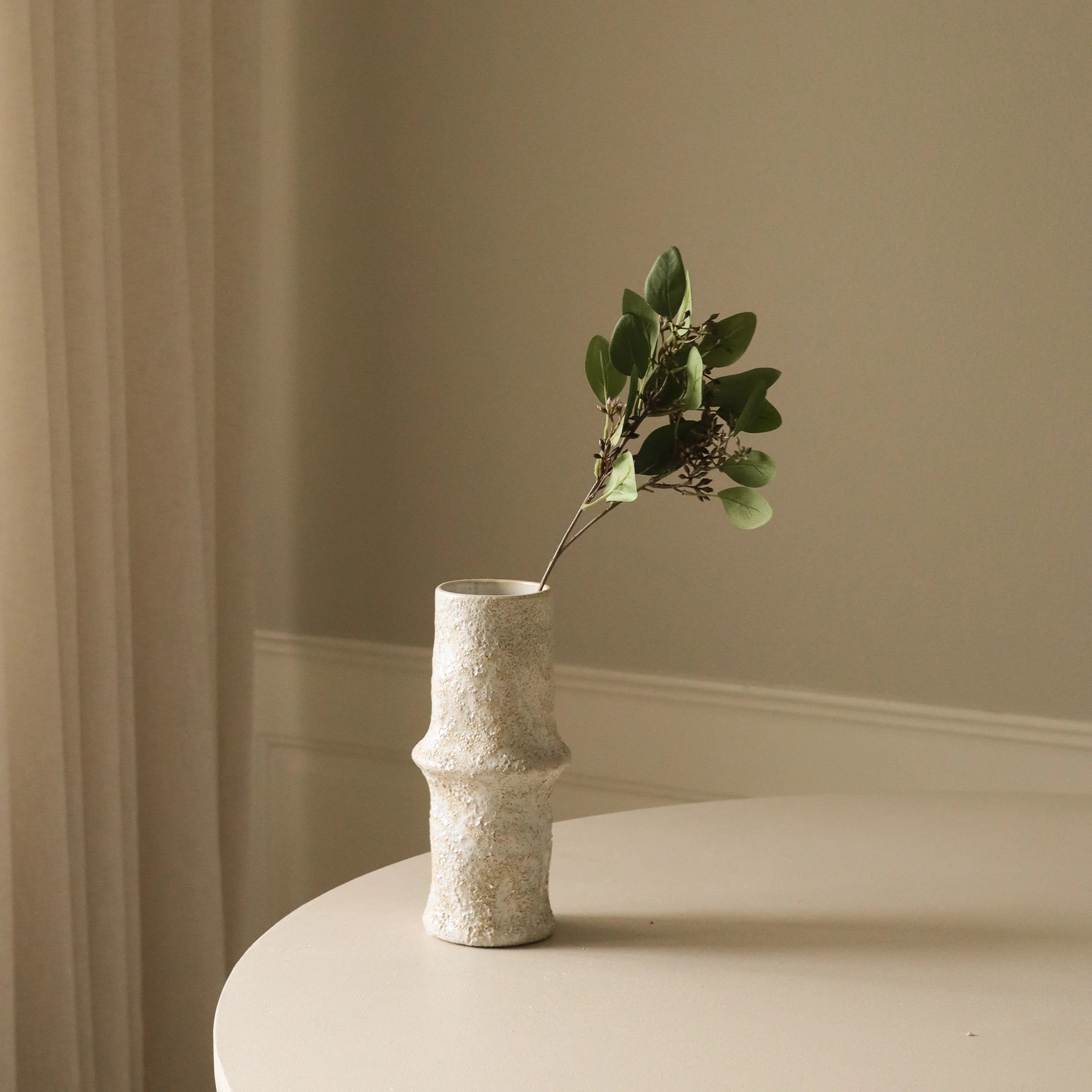 The Large Small Ceramic Earth Vase featured in the image measures 24,5 cm in height and 8 cm in diameter.