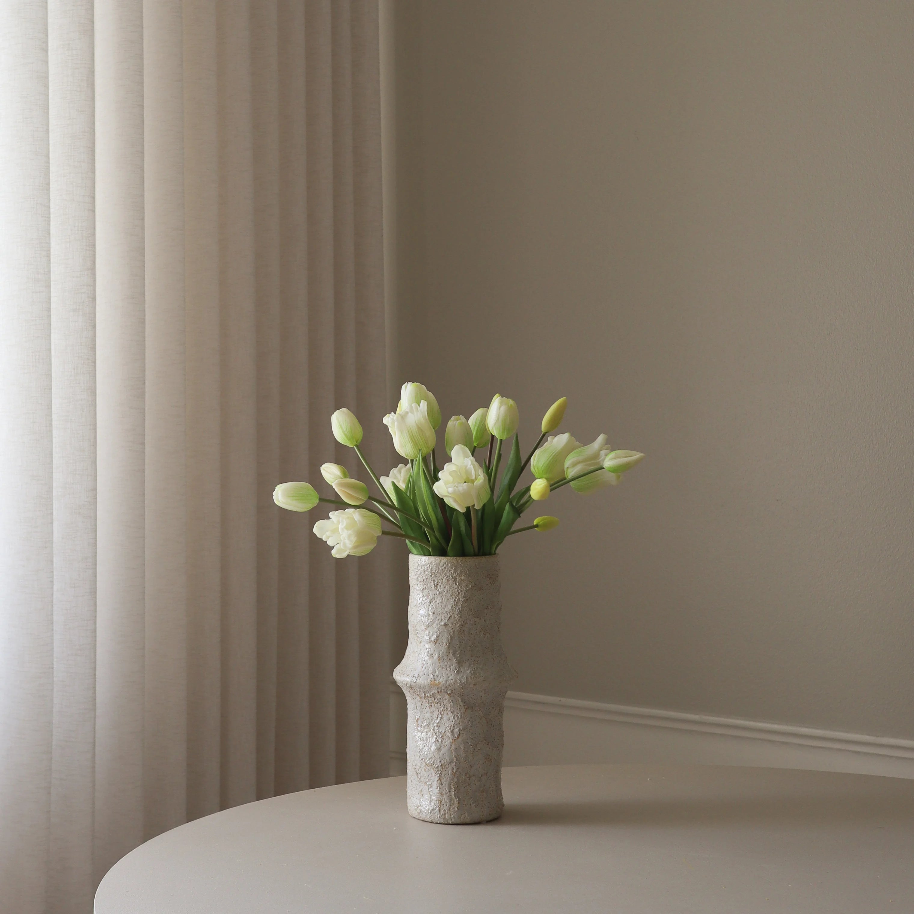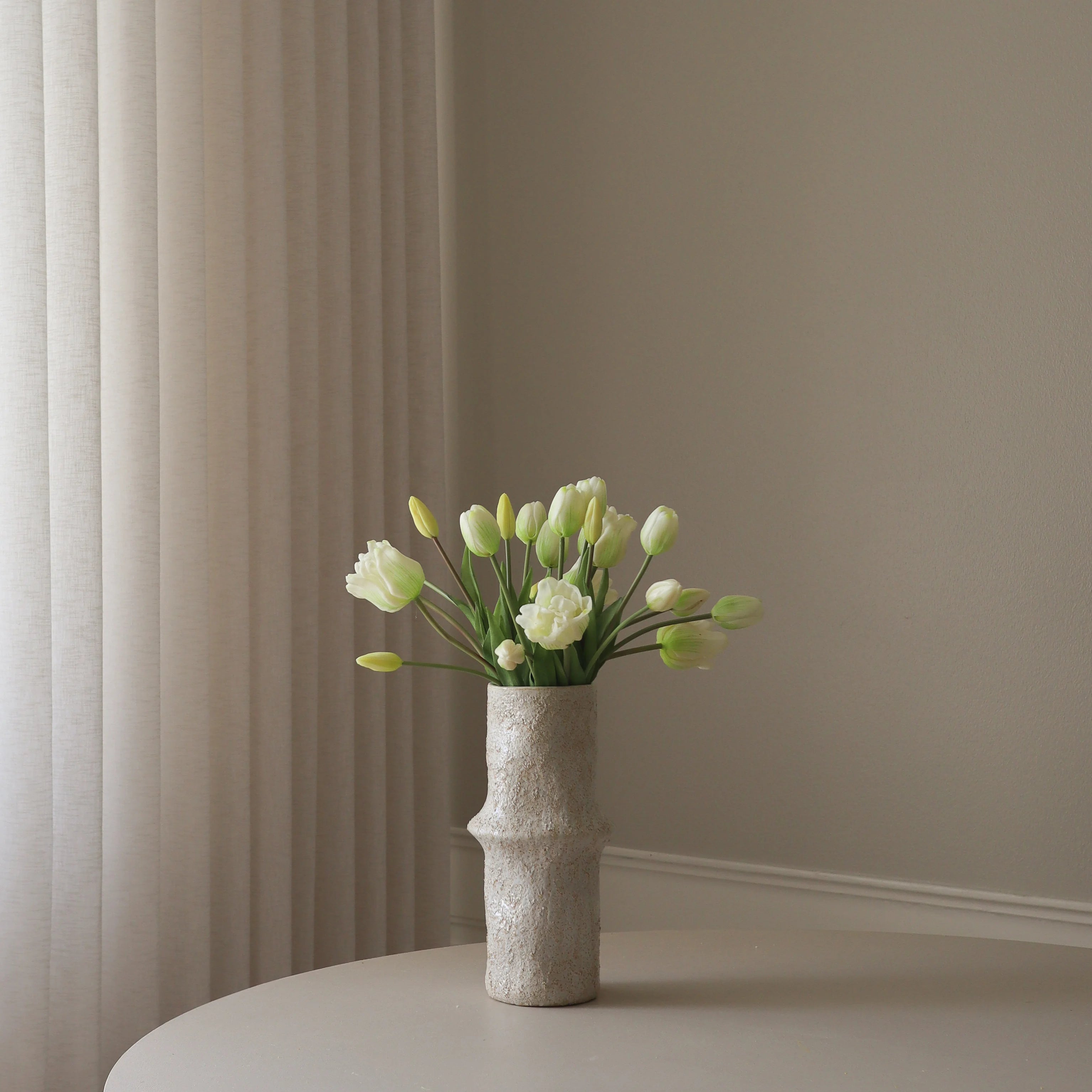The Ceramic Earth Vase featured in the image measures 30.5 cm in height and 10 cm in diameter.