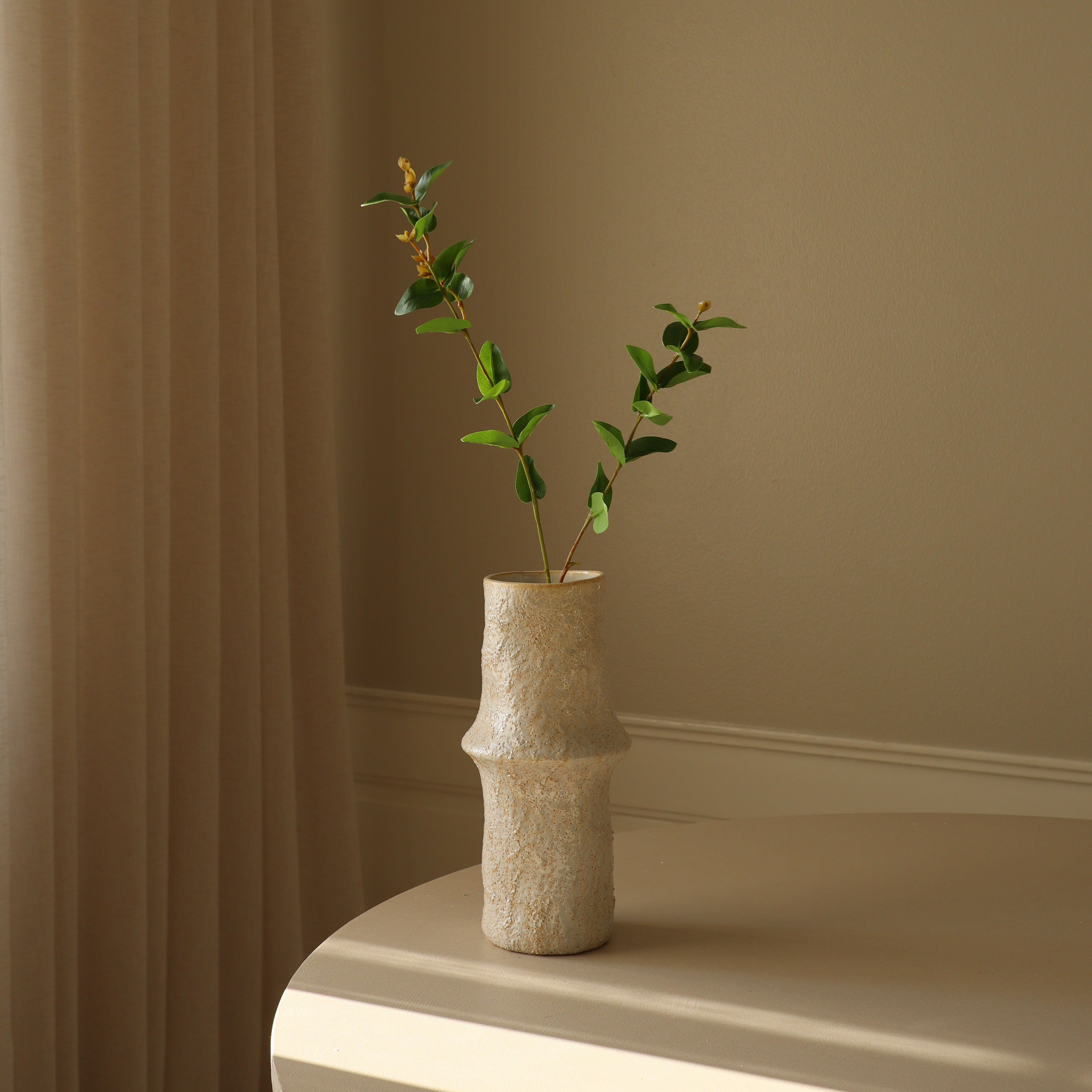 The Large Ceramic Earth Vase featured in the image measures 30.5 cm in height and 10 cm in diameter.