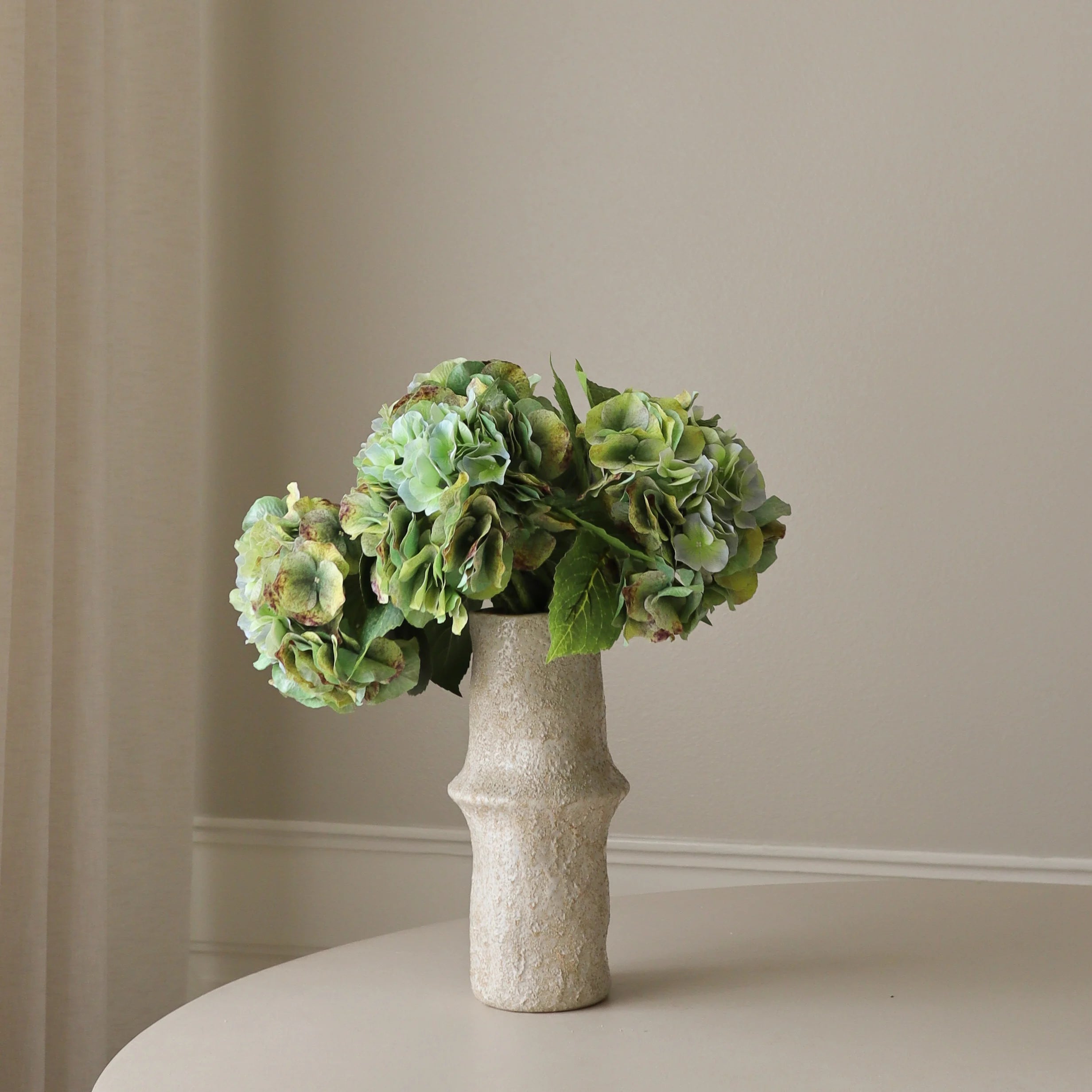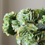 Clusters of lush green hydrangeas in soft, natural tones that capture the beauty of late-summer blooms.