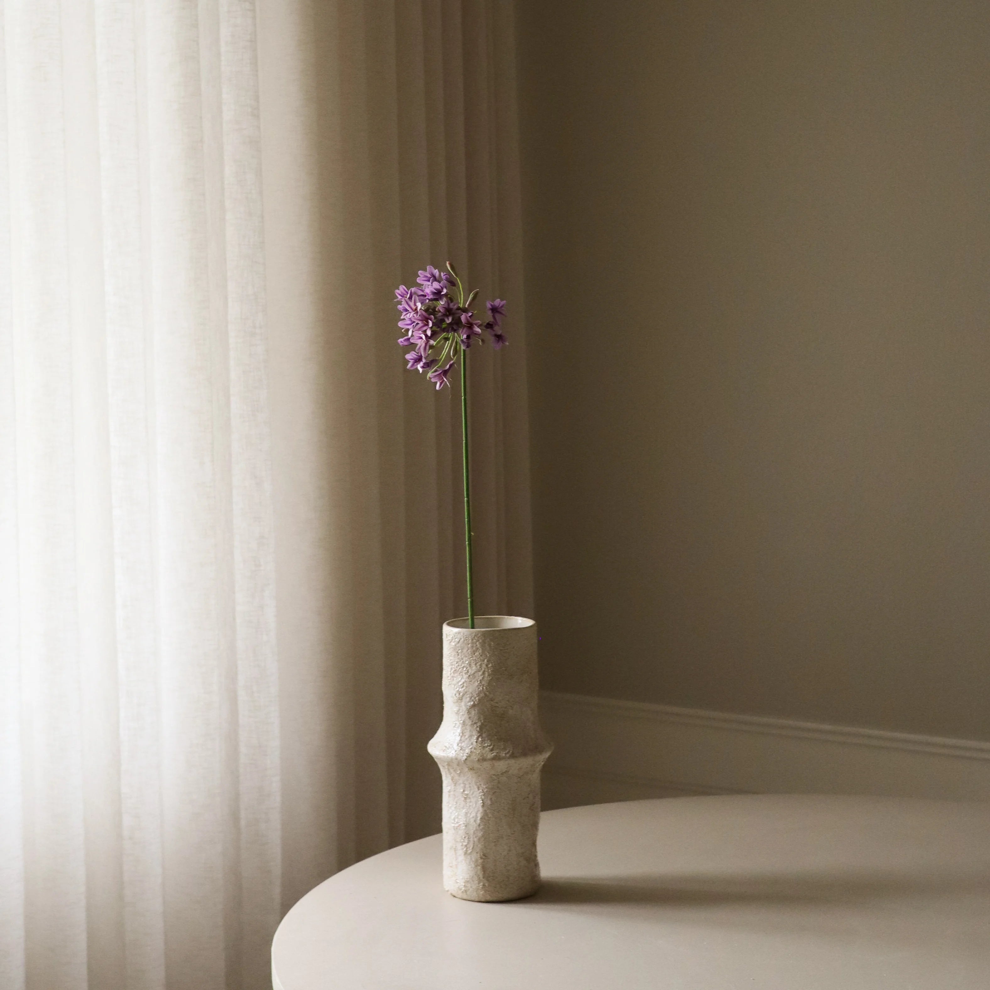 The Ceramic Earth Vase featured in the image measures 30.5 cm in height and 10 cm in diameter.