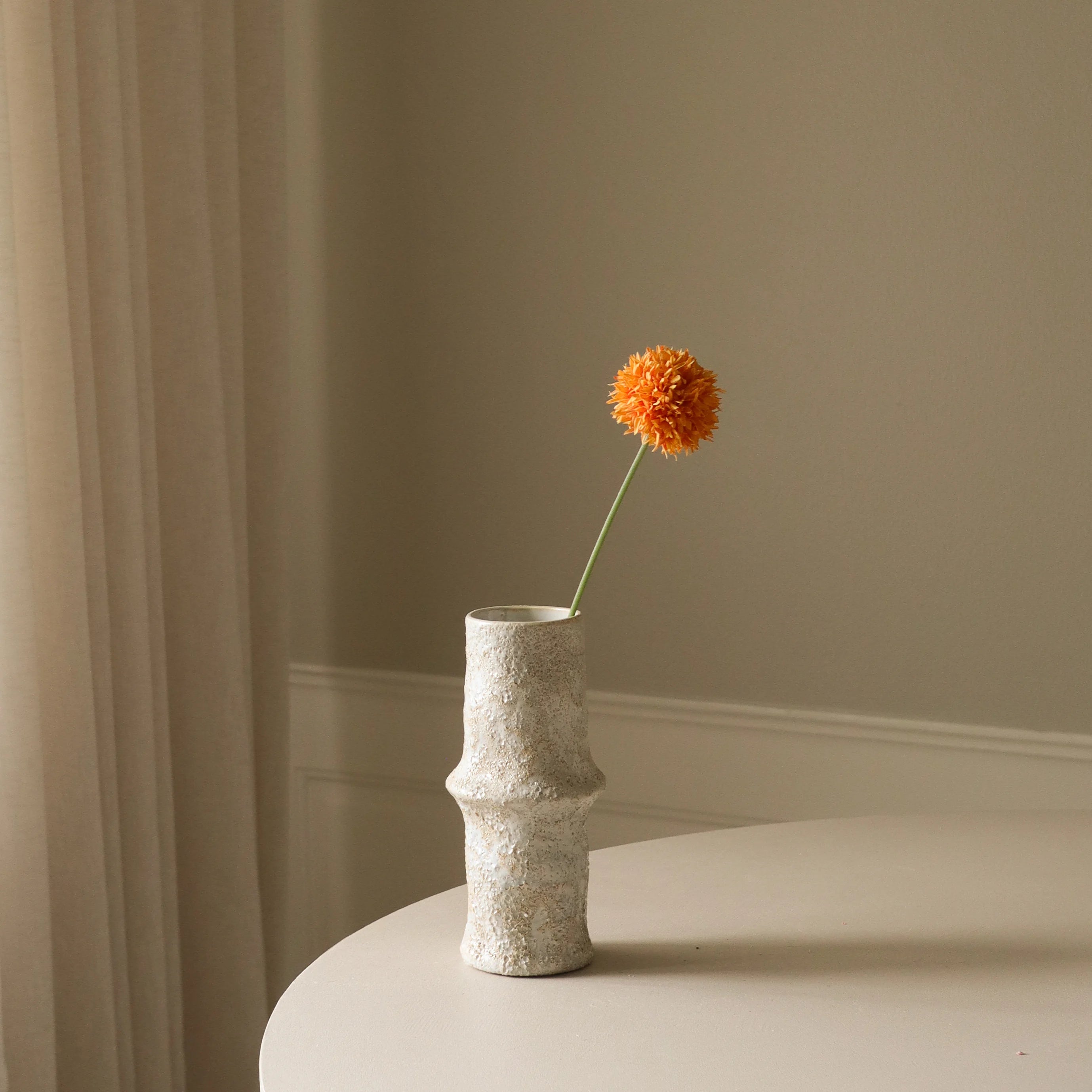 The Small Ceramic Earth Vase featured in the image measures 24,5 cm in height and 8 cm in diameter.