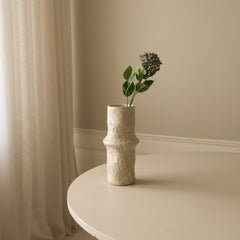 The Ceramic Earth Vase featured in the image measures 30.5 cm in height and 10 cm in diameter.