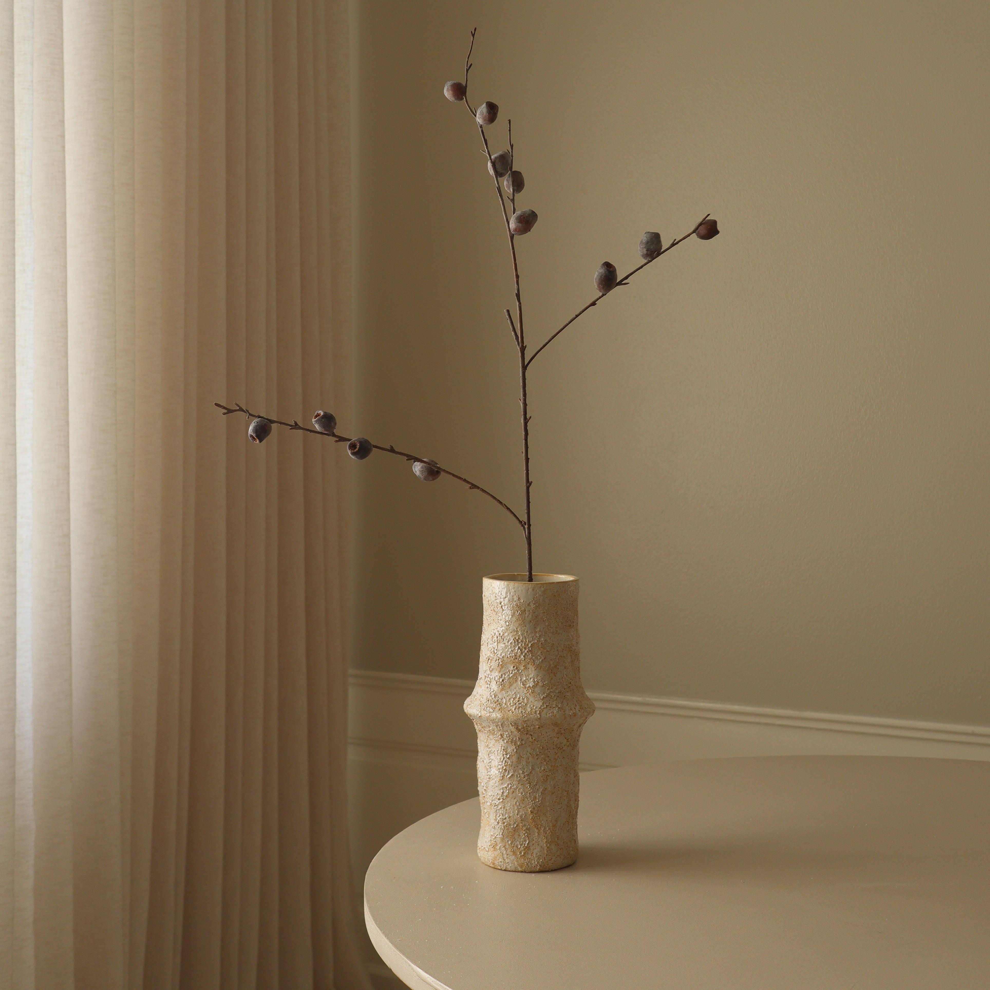 The Ceramic Earth Vase featured in the image measures 30.5 cm in height and 10 cm in diameter.