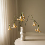 This Beige Datura Stramonium Flower displays elegant trumpet-shaped blooms in a soft, creamy beige hue with gentle ripples along the petal edges. The blossoms are gracefully suspended from slender, slightly curved pale stems, which measure 70 cm in height, and are accompanied by subtle, elongated green bracts.