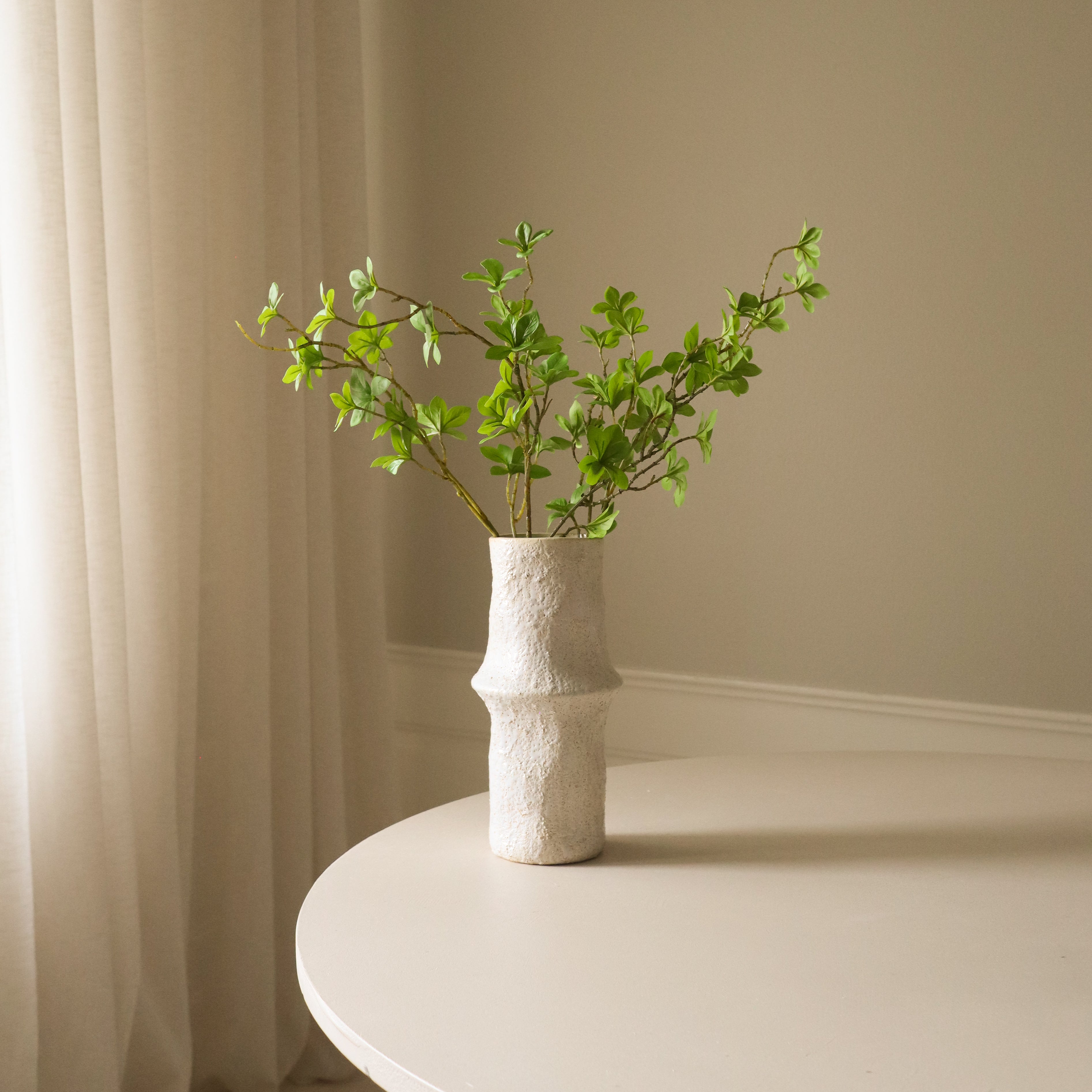The Small Ceramic Earth Vase featured in the image measures 24,5 cm in height and 8 cm in diameter.