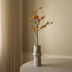 The Medium Ceramic Volcanic Vase featured in the image measures 28 cm in height and 10 cm in diameter.