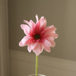 This Light Pink Gerbera Daisy Flower features a delicately layered bloom with soft pink petals that transition to a deeper hue towards the center. The finely textured petals surround a dark brown central disk, creating a striking contrast. The bloom is supported by a slender, smooth green stem measuring 65 cm in height.