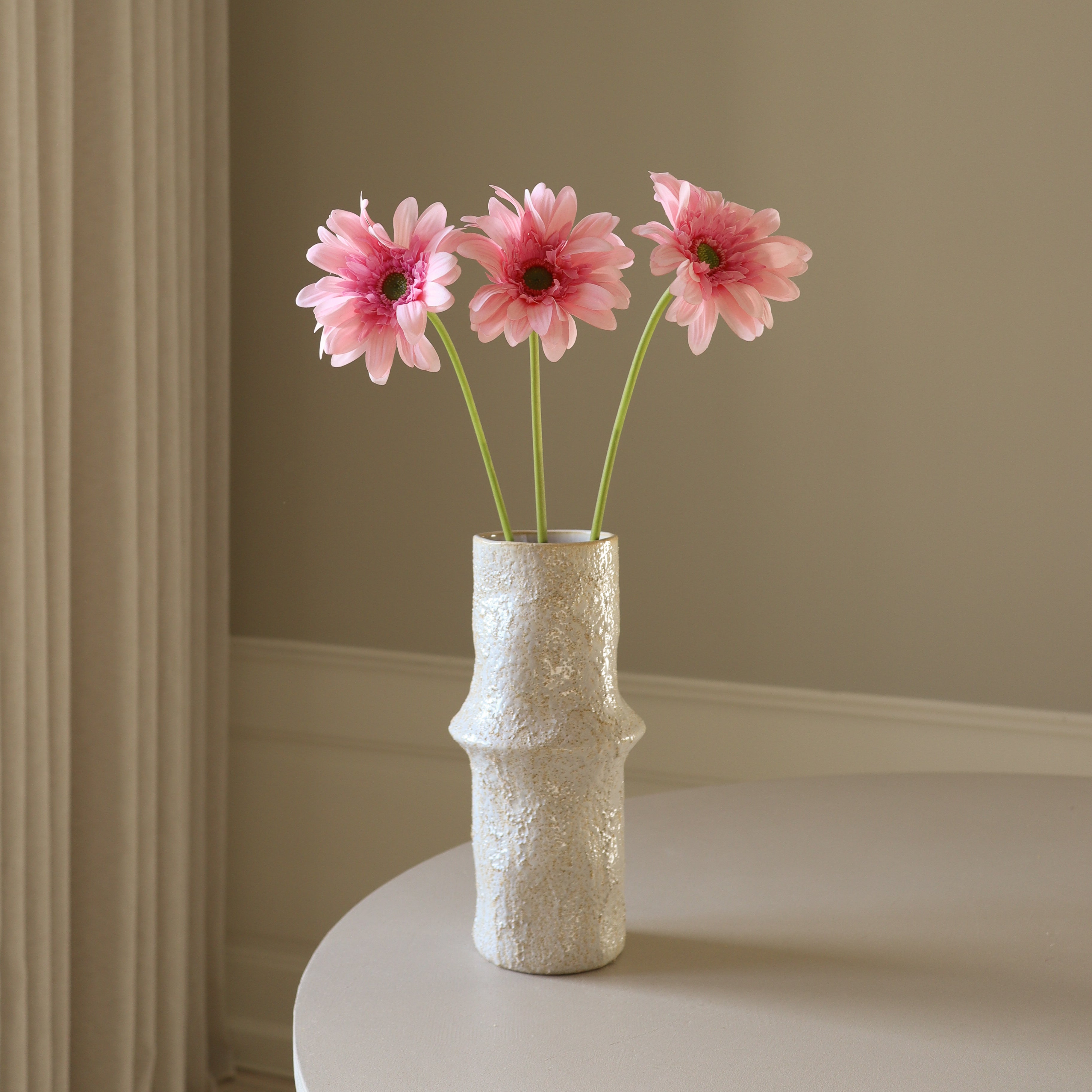 The Ceramic Earth Vase featured in the image measures 30.5 cm in height and 10 cm in diameter.