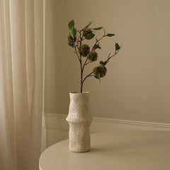 The Medium Volcanic vase featured in the image measures 28 cm in height and 10.5 cm in diameter.
