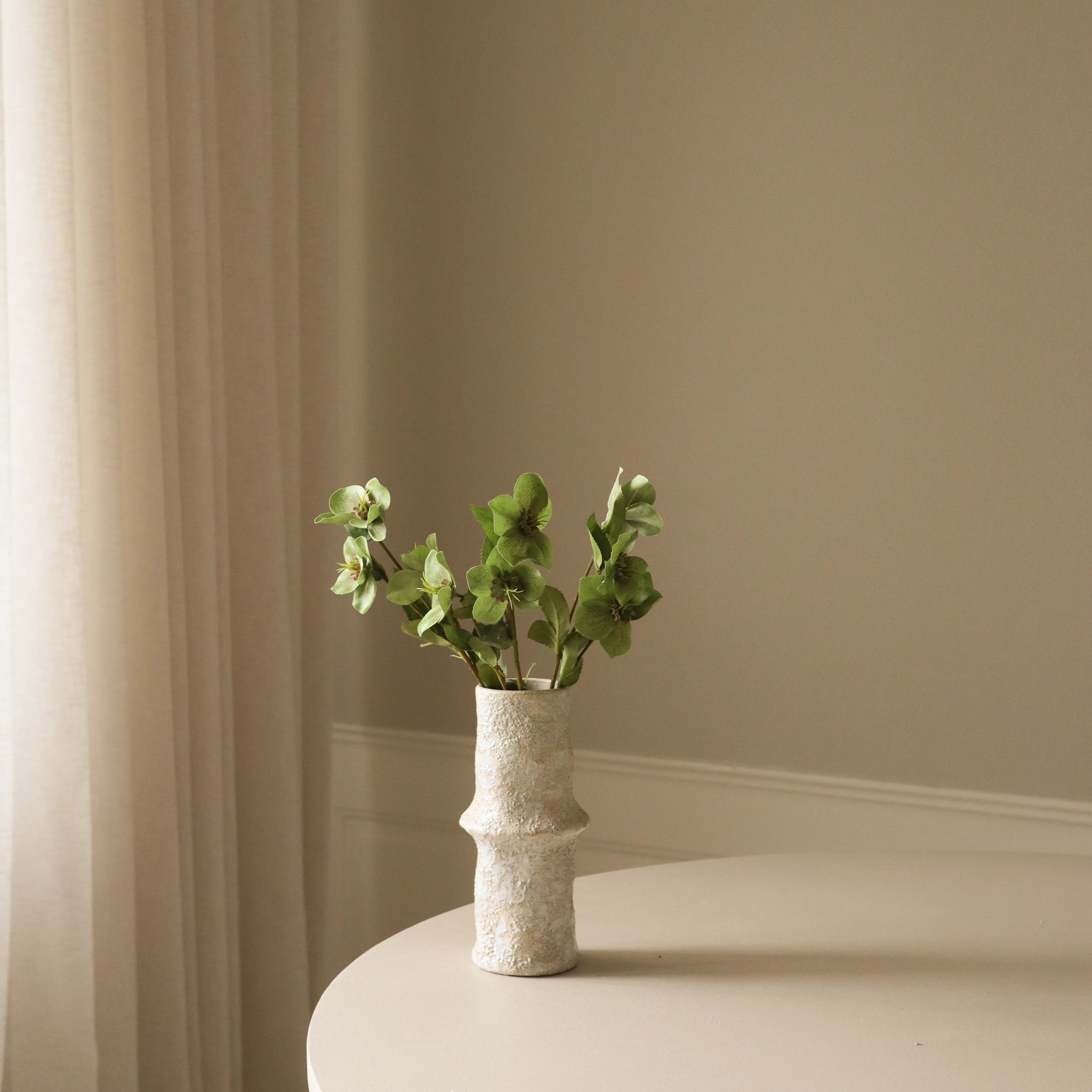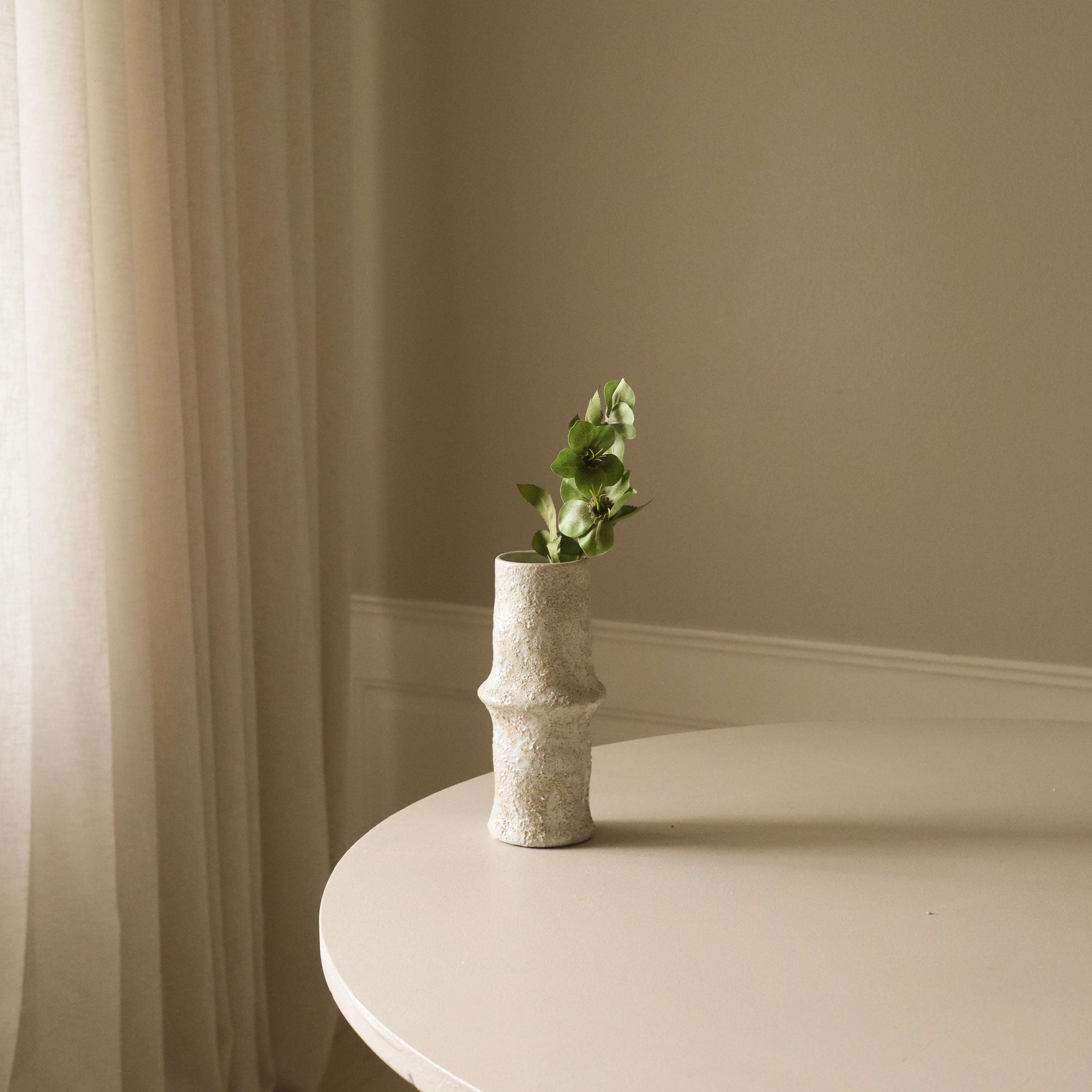 The Small Ceramic Earth Vase featured in the image measures 24,5 cm in height and 8 cm in diameter.