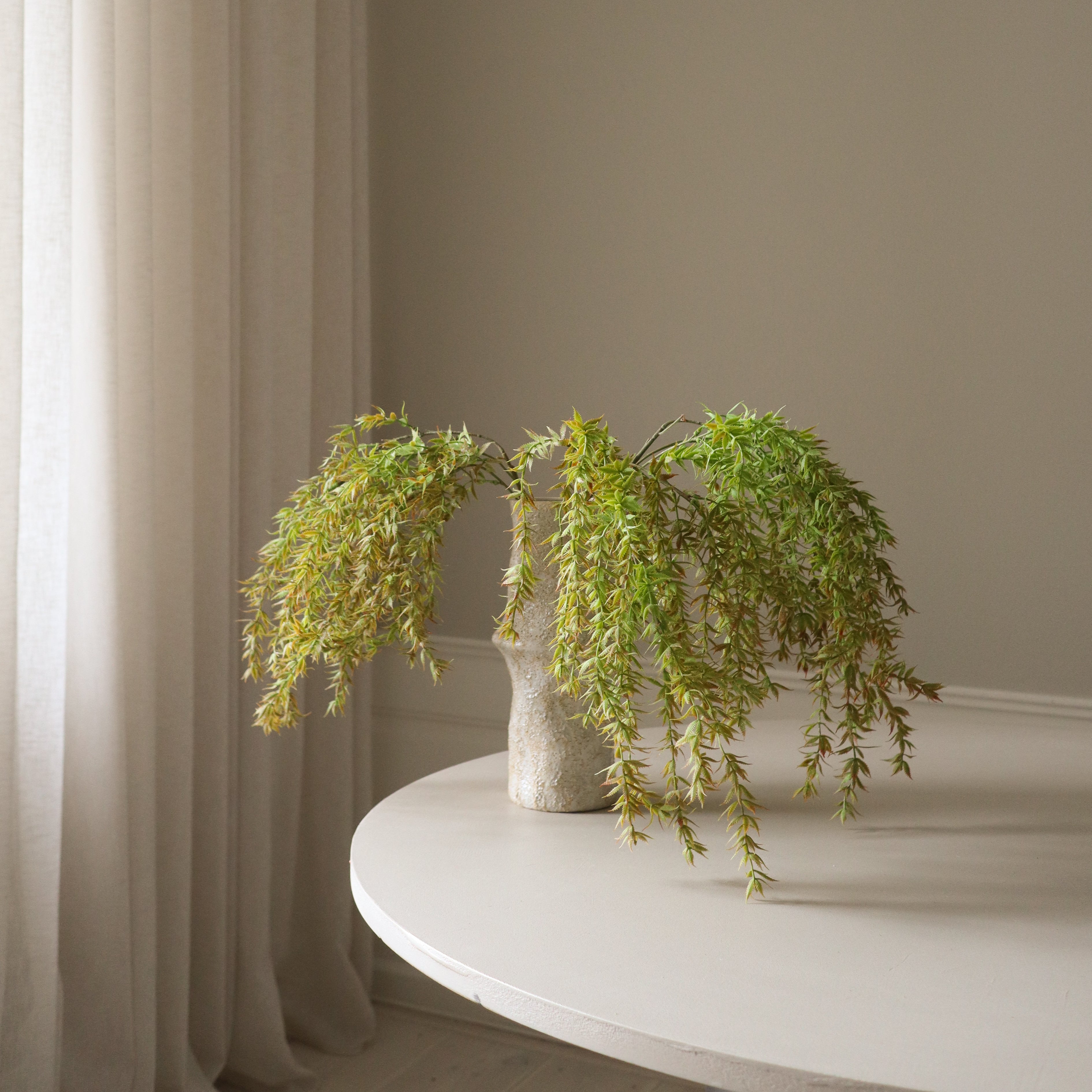 This Light Green Hanging Branch with Leaves features delicate, cascading foliage in a mix of soft green and golden hues. The finely serrated leaves extend from slender, slightly textured stems, creating a natural draping effect. The branch measures 91 cm in height.