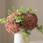 This bouquet features rich, clustered blooms in warm tones, complemented by delicate green foliage for a natural and balanced look. Its compact size makes it an ideal choice for smaller spaces or as a refined accent piece.