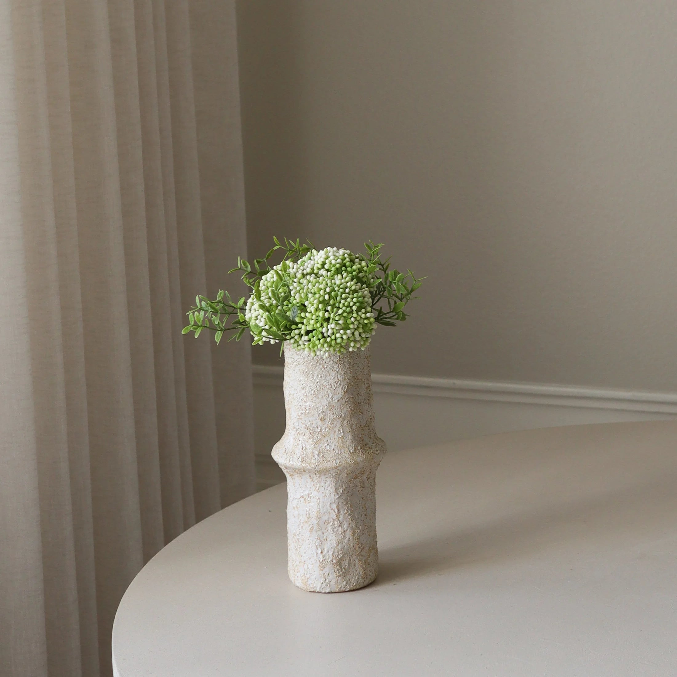 The Small Ceramic Earth Vase featured in the image measures 24,5 cm in height and 8 cm in diameter.