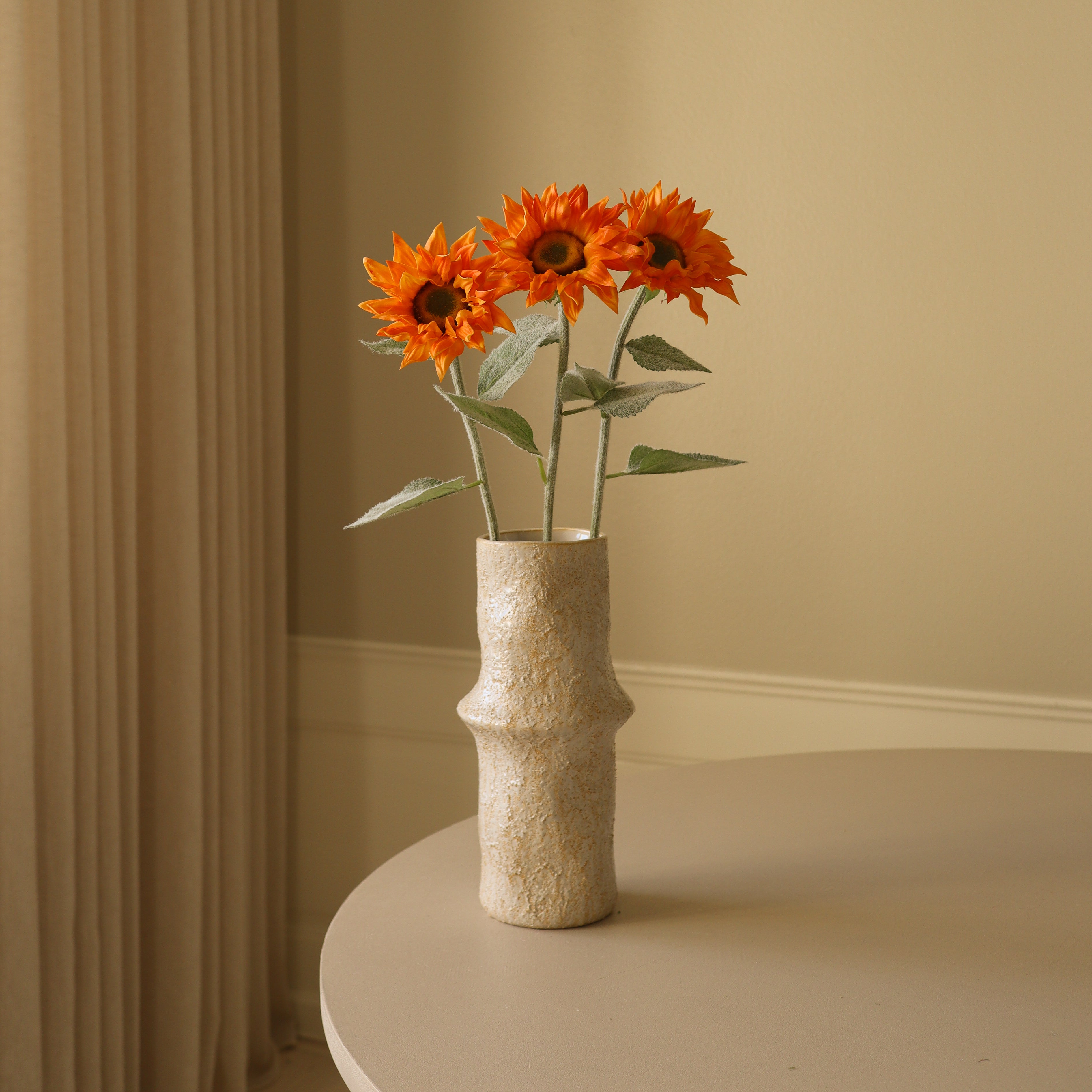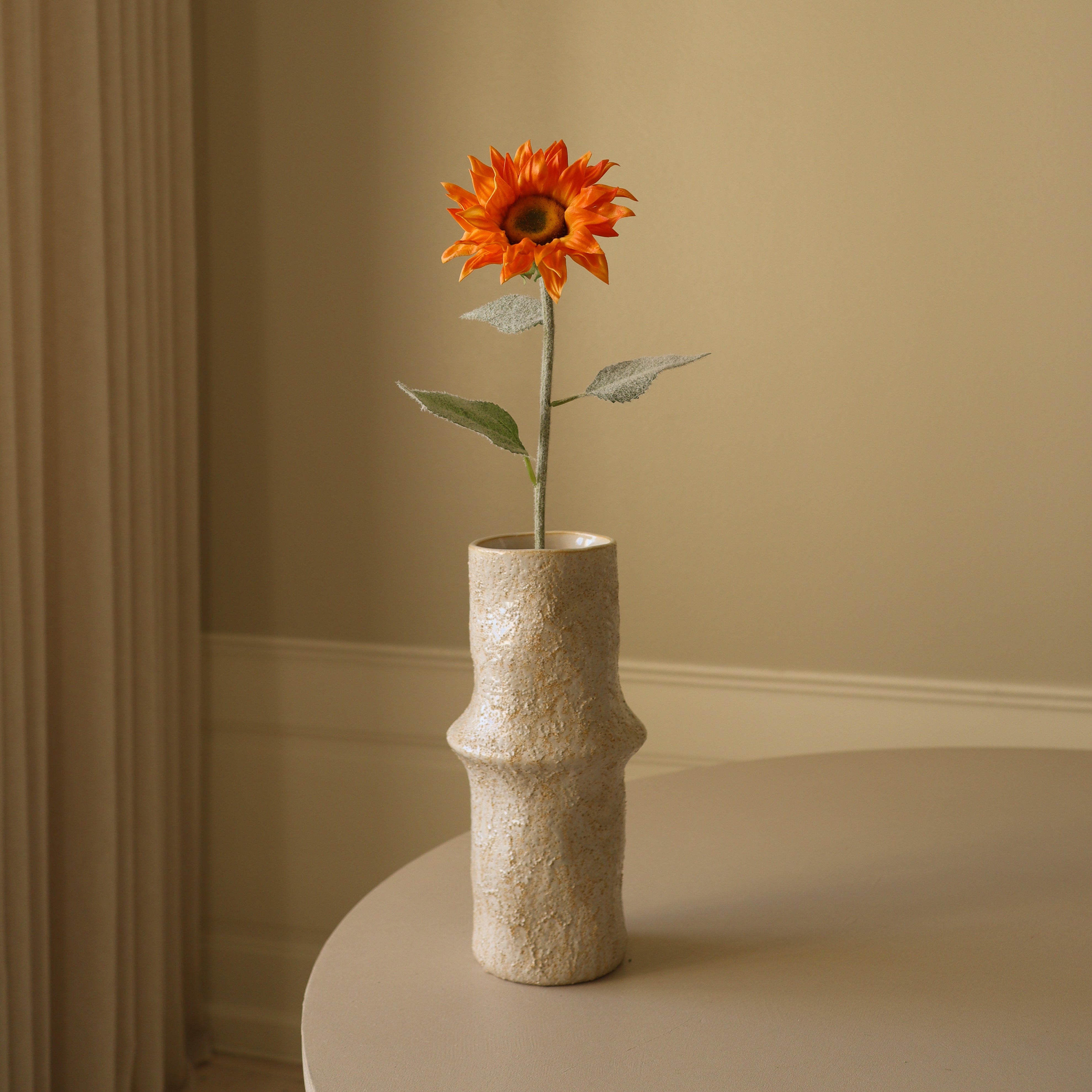 The Ceramic Earth Vase featured in the image measures 30.5 cm in height and 10 cm in diameter.