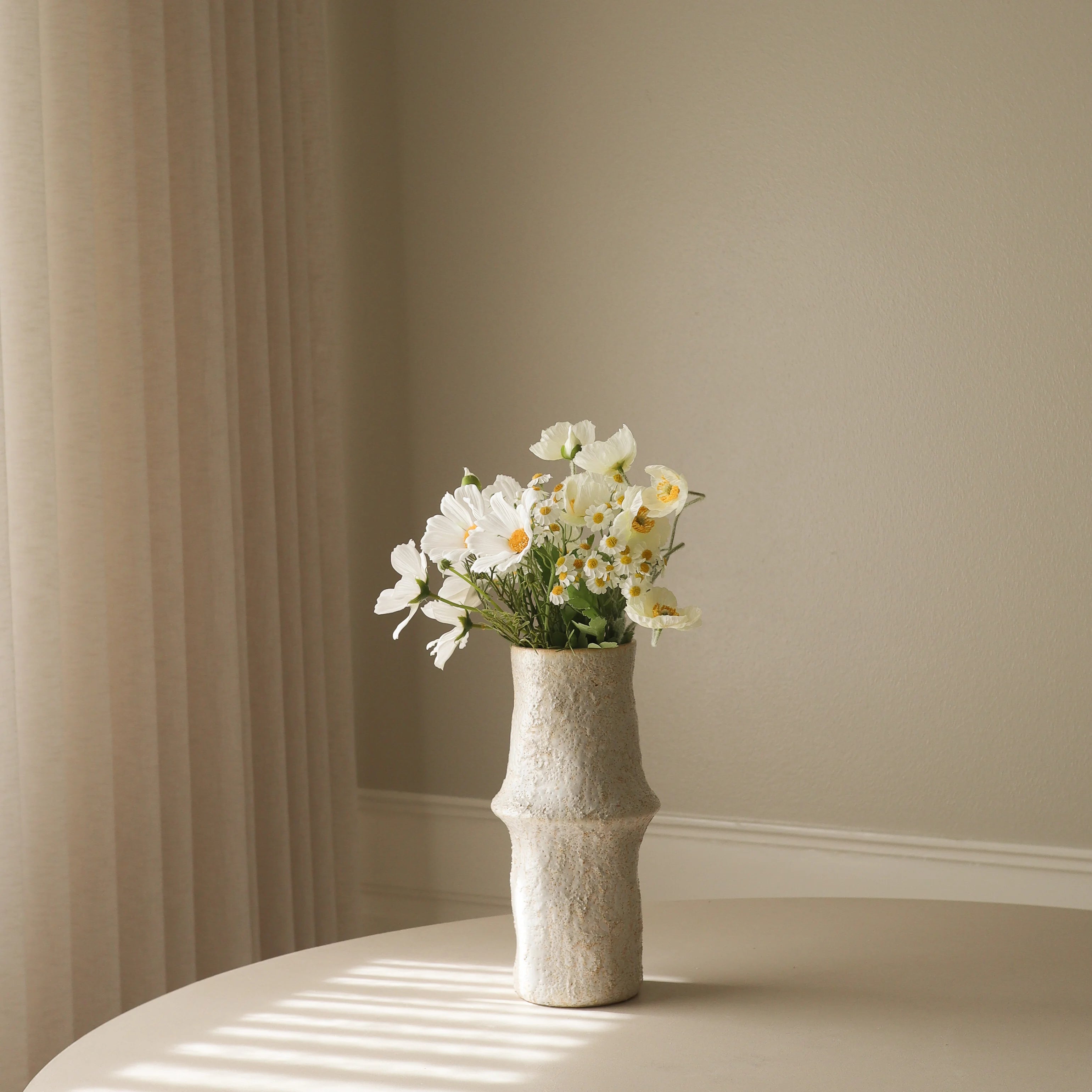 The Ceramic Earth Vase featured in the image measures 30.5 cm in height and 10 cm in diameter.
