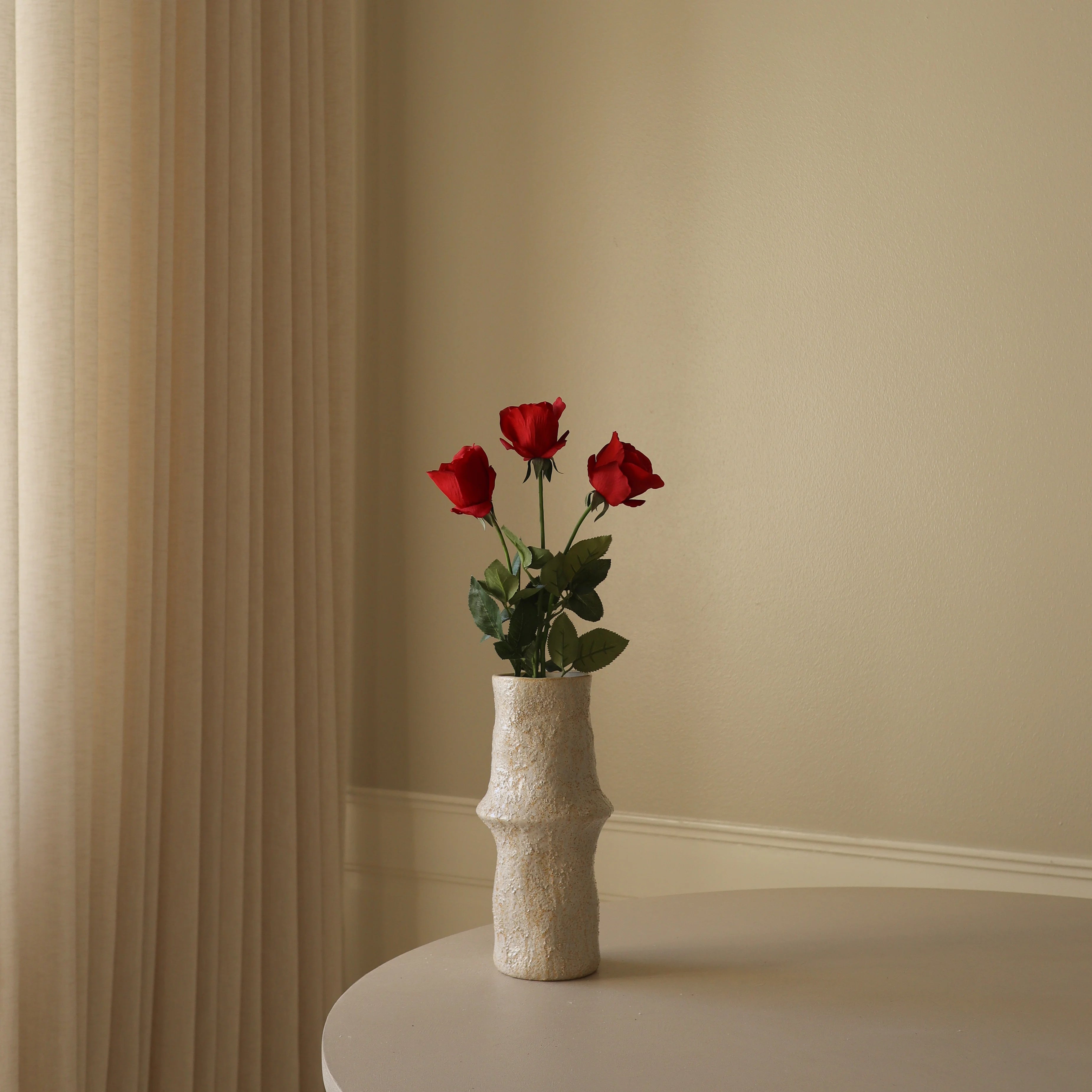 The Ceramic Earth Vase featured in the image measures 30.5 cm in height and 10 cm in diameter.