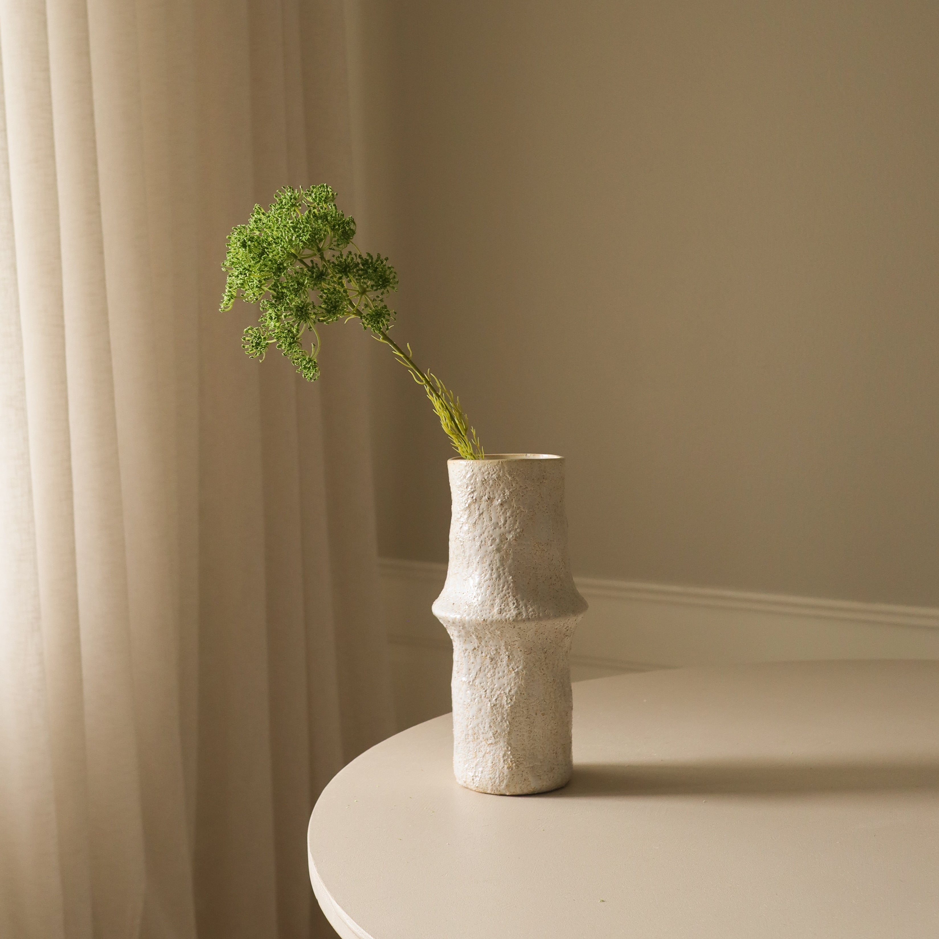 The Ceramic Earth Vase featured in the image measures 30.5 cm in height and 10 cm in diameter.