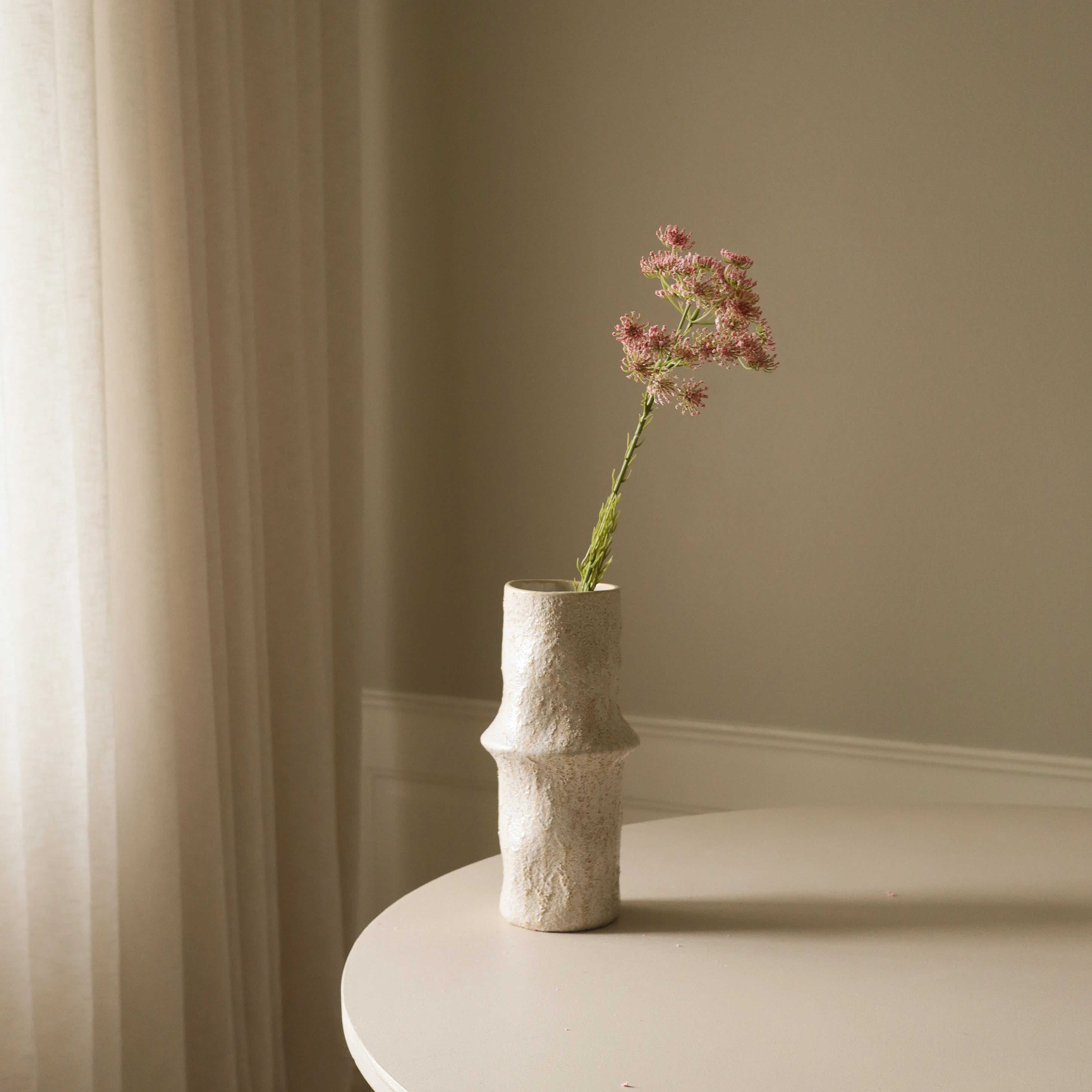 The Ceramic Earth Vase featured in the image measures 30.5 cm in height and 10 cm in diameter.