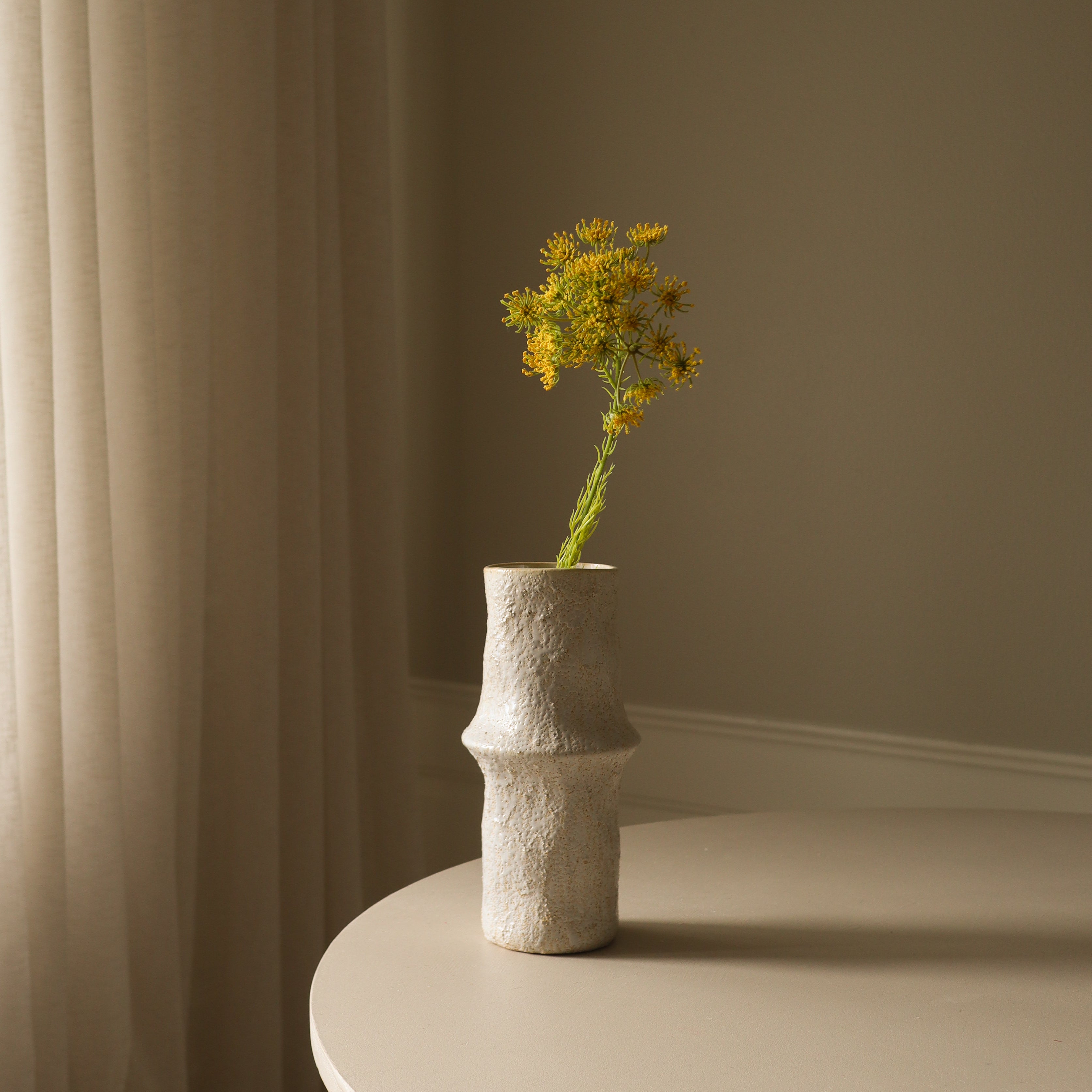 The Ceramic Earth Vase featured in the image measures 30.5 cm in height and 10 cm in diameter.