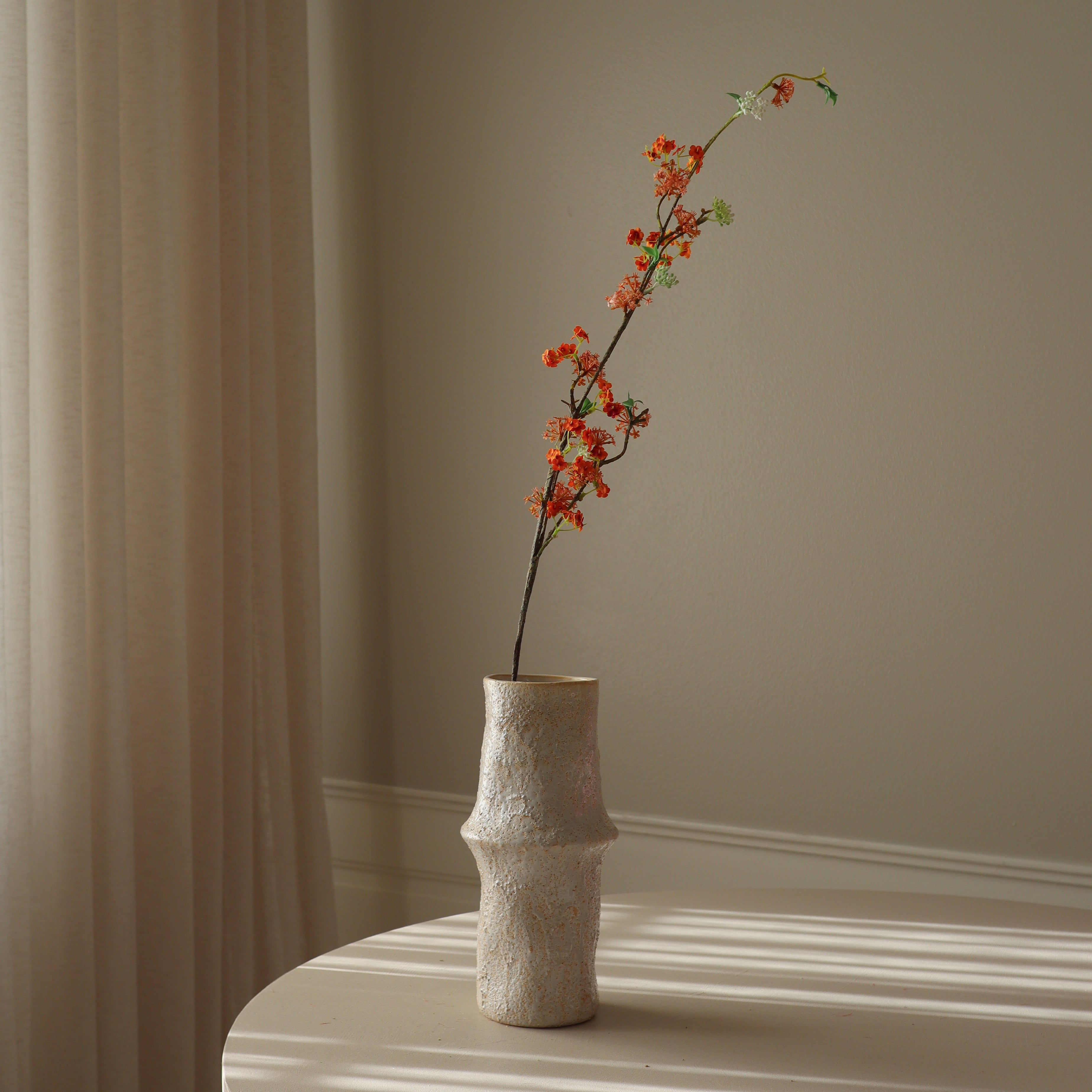 The Ceramic Earth Vase featured in the image measures 30.5 cm in height and 10 cm in diameter.
