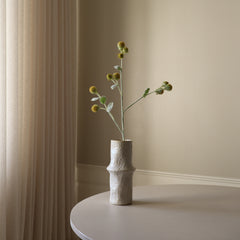 The Medium Ceramic Volcanic vase featured in the image measures 28 cm in height and 10 cm in diameter.