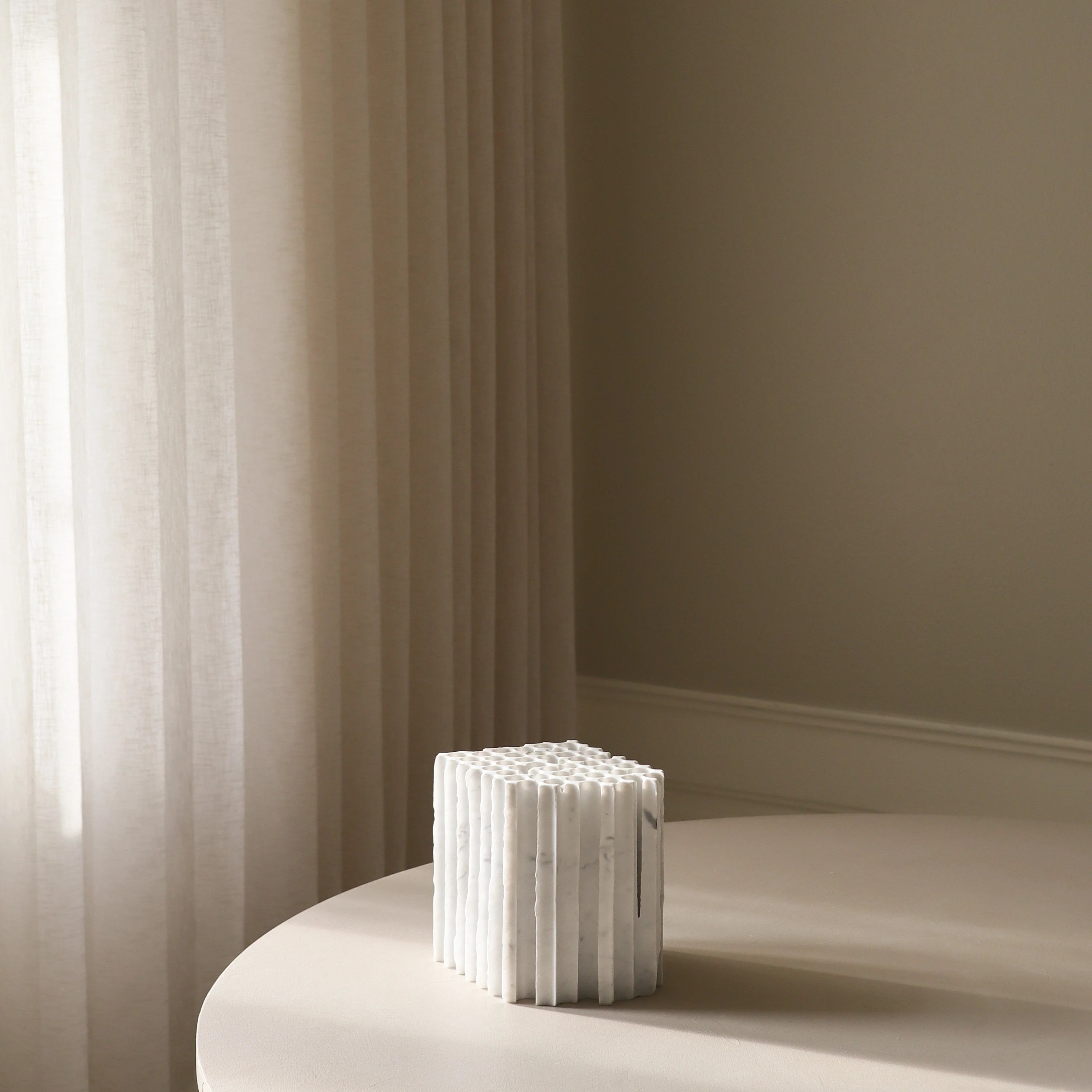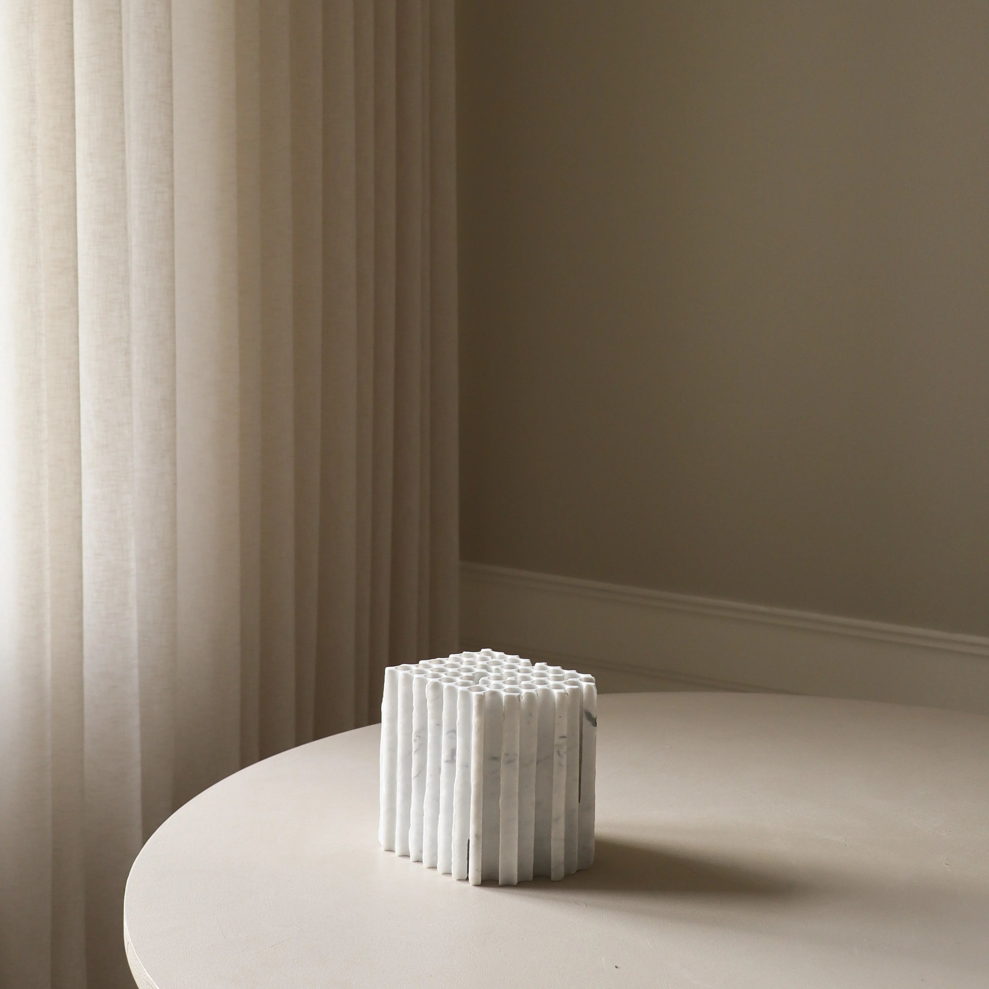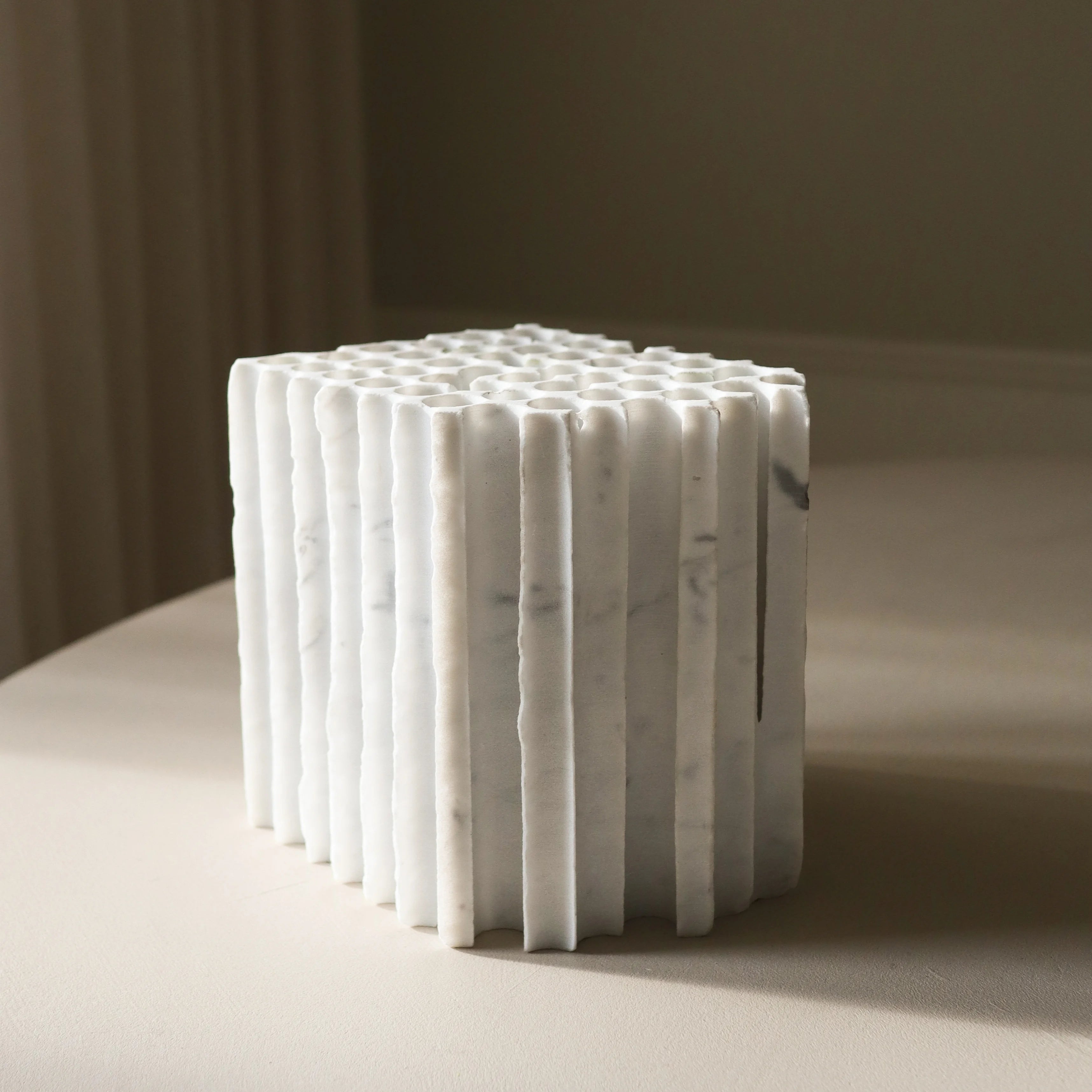 Each one of our vases is our collection is unique as it is hand-cut from excess marble.