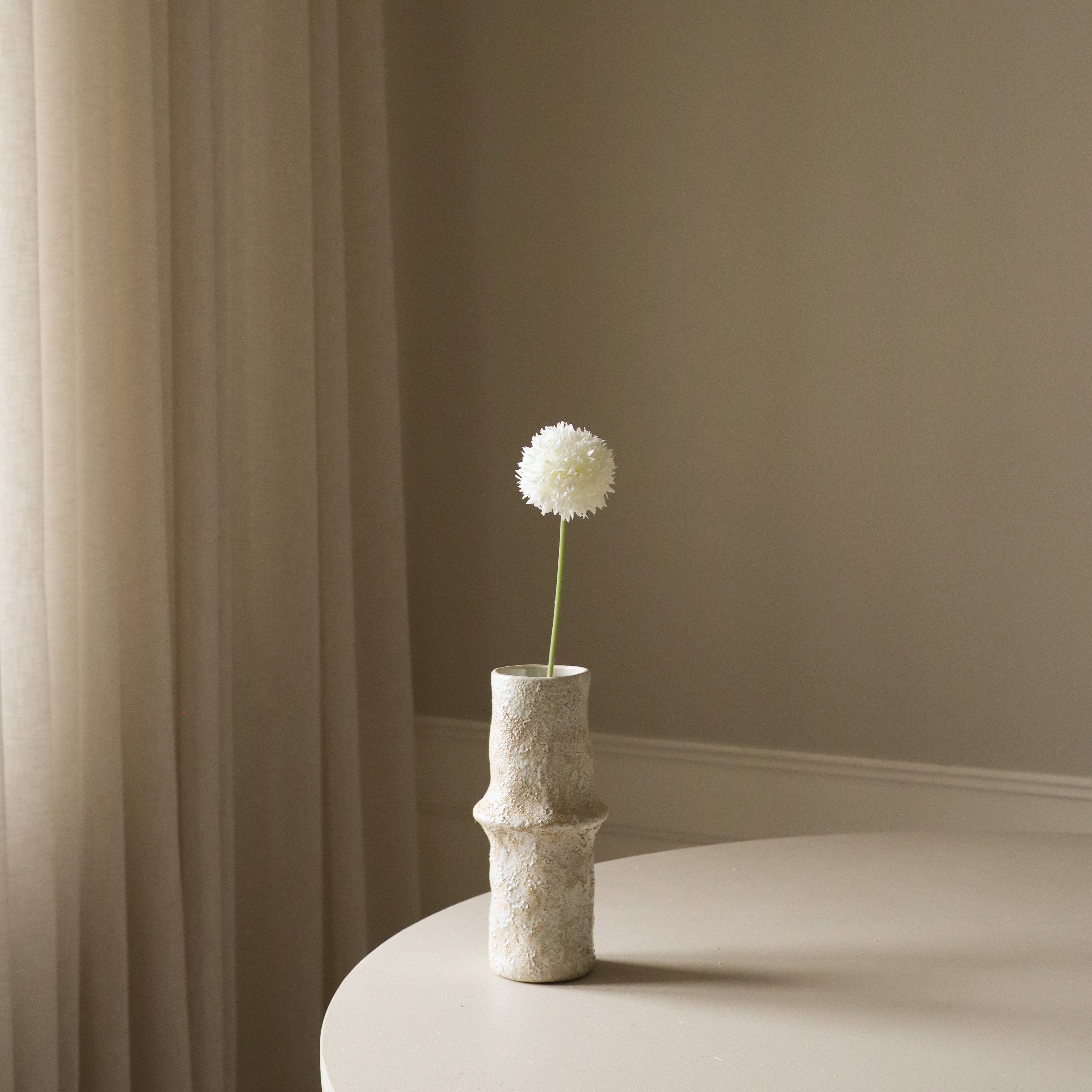 The Small Ceramic Earth Vase featured in the image measures 24,5 cm in height and 8 cm in diameter.