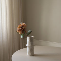 The Ceramic Earth Vase featured in the image measures 30.5 cm in height and 10 cm in diameter.