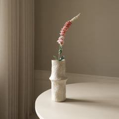 The Ceramic Earth Vase featured in the image measures 30.5 cm in height and 10 cm in diameter.