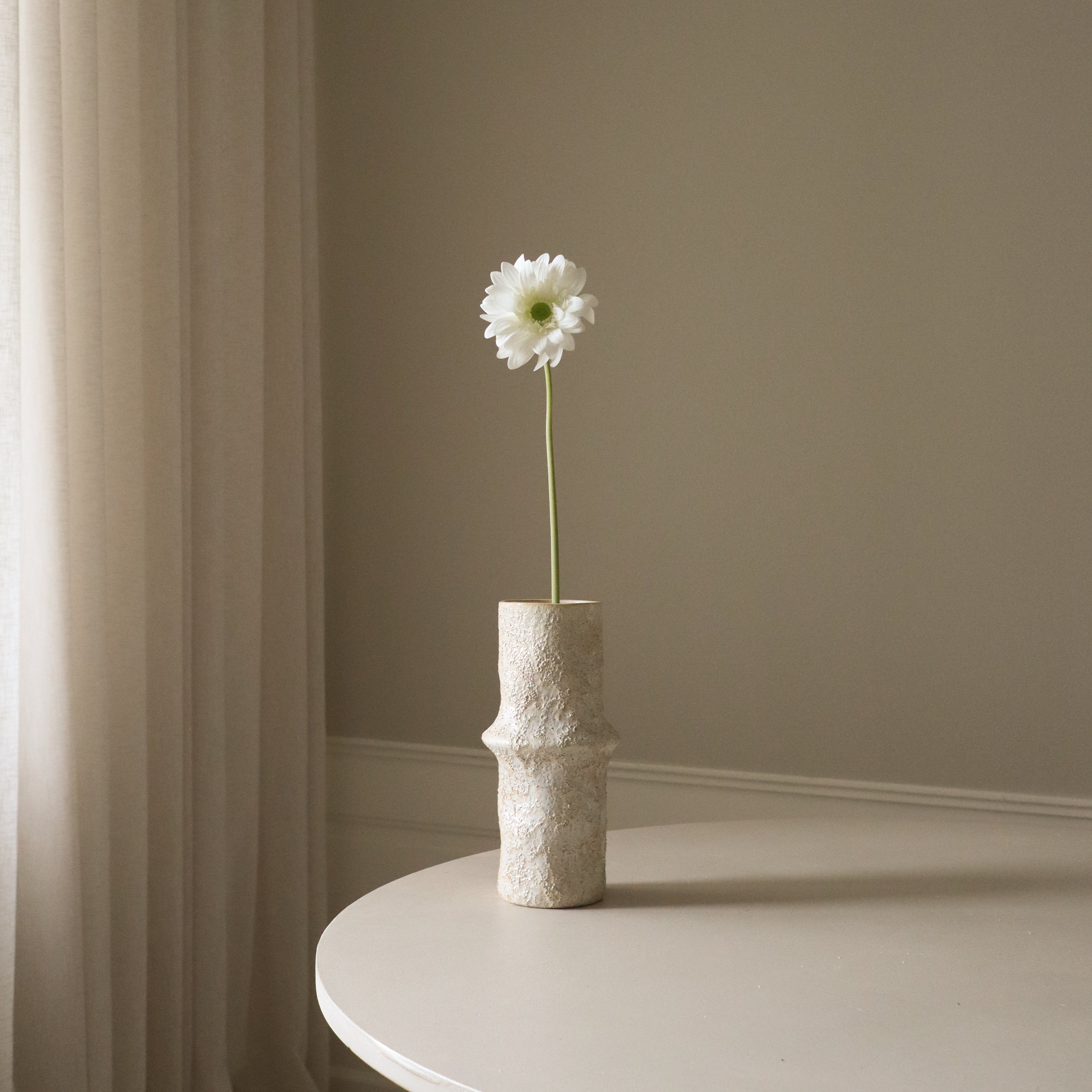 The Ceramic Earth Vase featured in the image measures 30.5 cm in height and 10 cm in diameter.