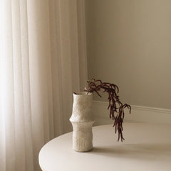 The Ceramic Earth Vase featured in the image measures 30.5 cm in height and 10 cm in diameter.