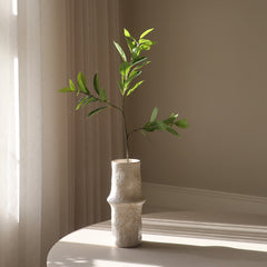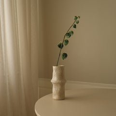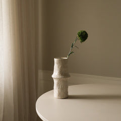 The Medium Ceramic Volcanic Vase featured in the image measures 28 cm in height and 10 cm in diameter.