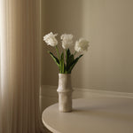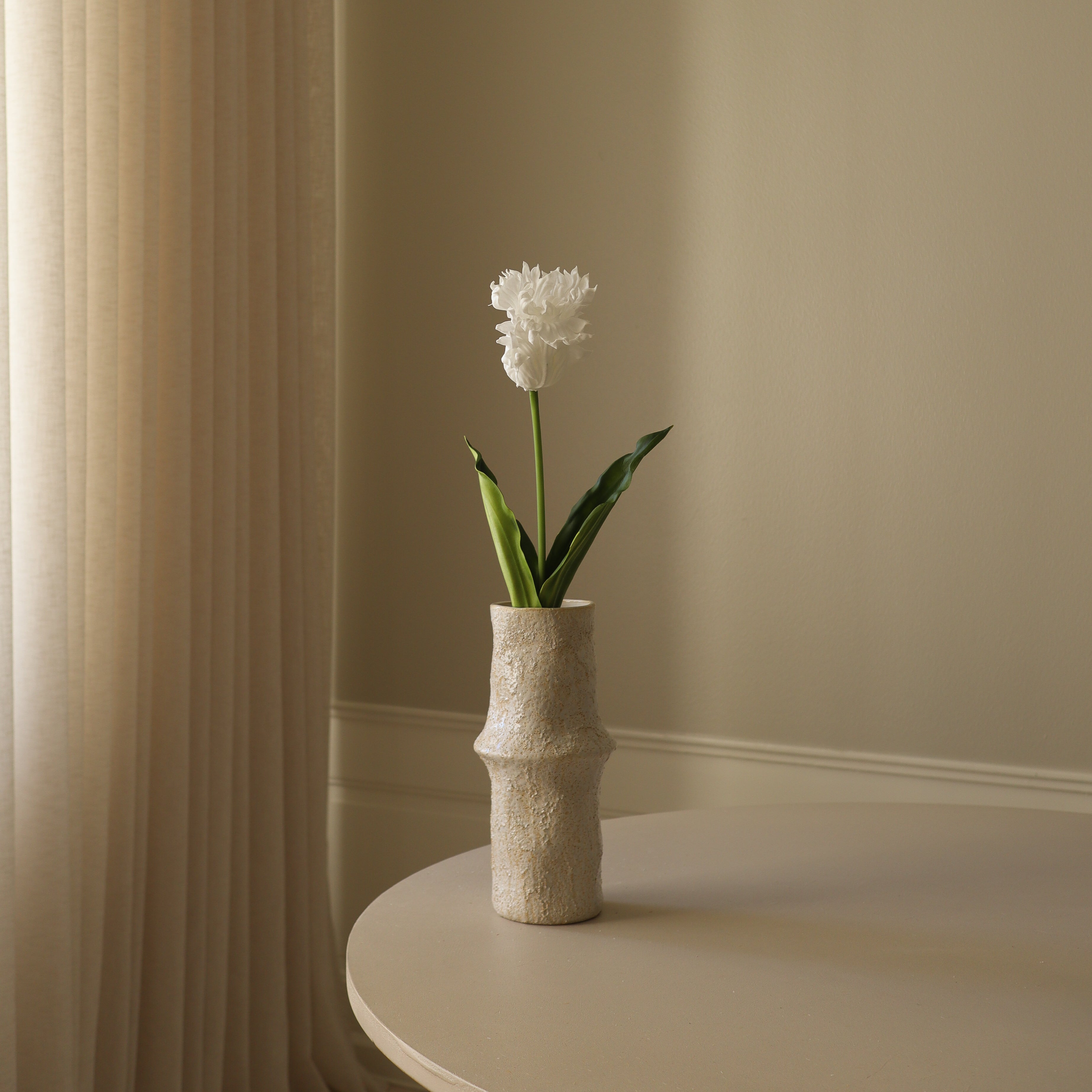 The Ceramic Earth Vase featured in the image measures 30.5 cm in height and 10 cm in diameter.