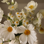 This bouquet captures the charm of delicate white blooms, arranged in a soft and airy composition. The combination of structured petals and wispy stems creates a light and natural look, perfect for an effortless, elegant display.