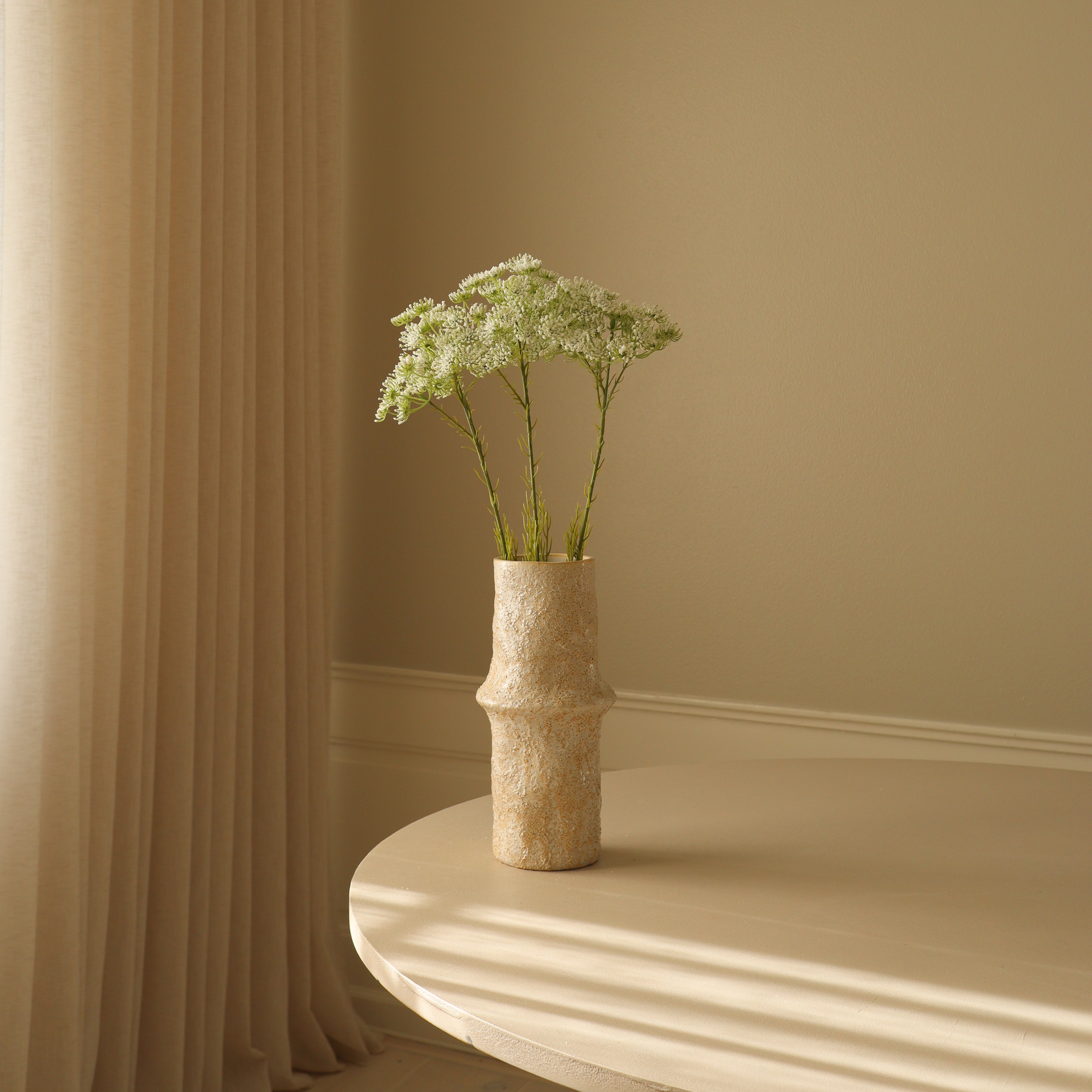 The Ceramic Earth Vase featured in the image measures 30.5 cm in height and 10 cm in diameter.