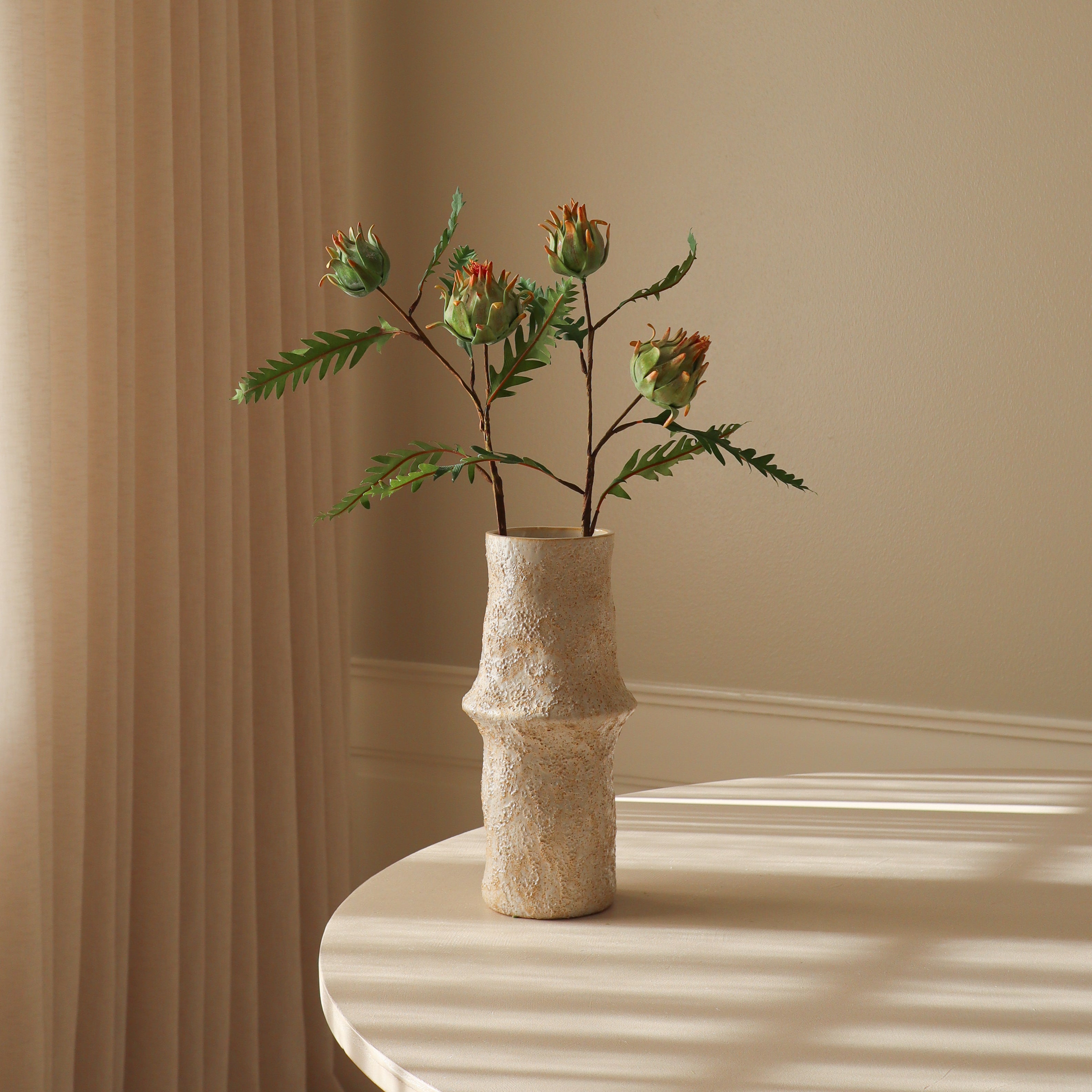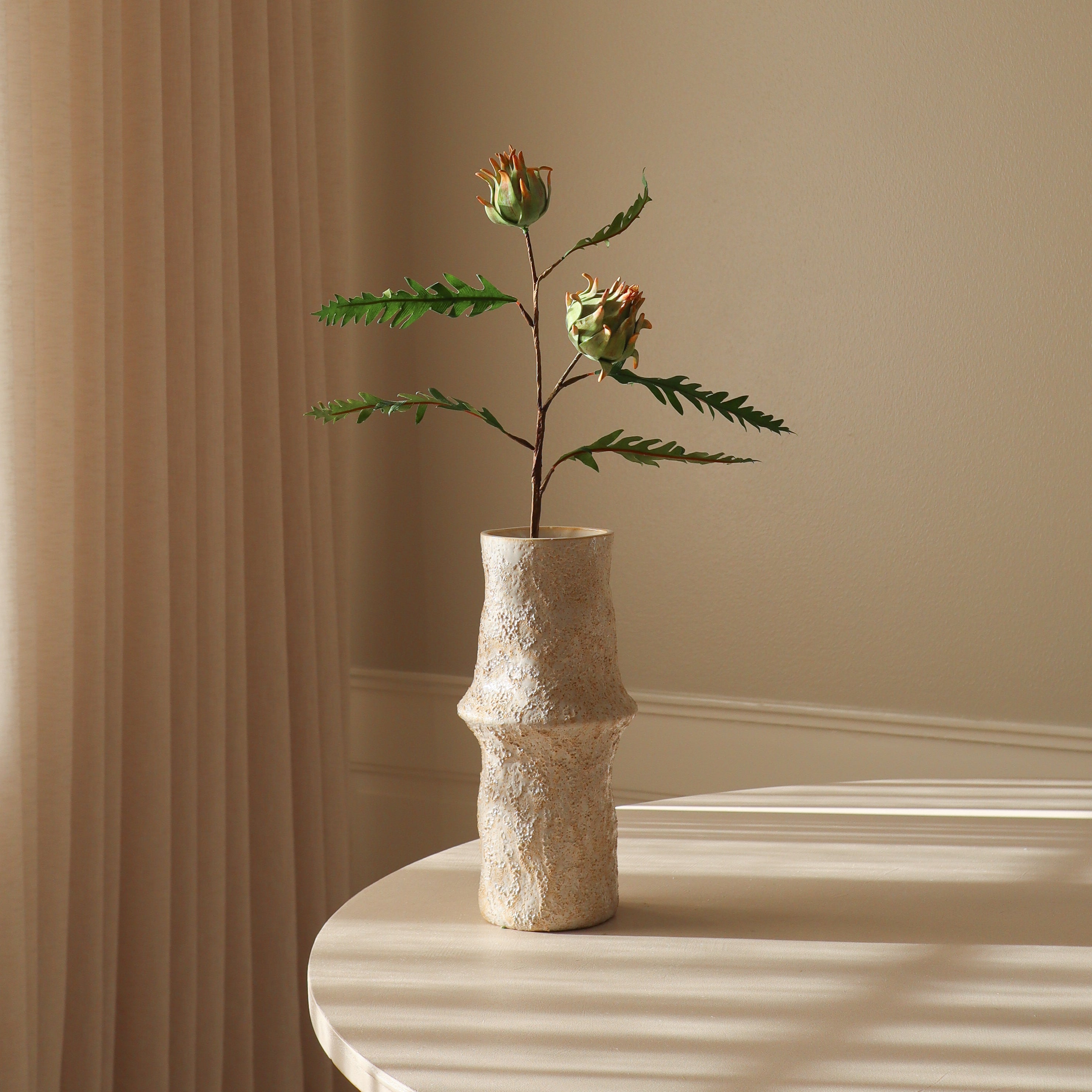 The Ceramic Earth Vase featured in the image measures 30.5 cm in height and 10 cm in diameter.