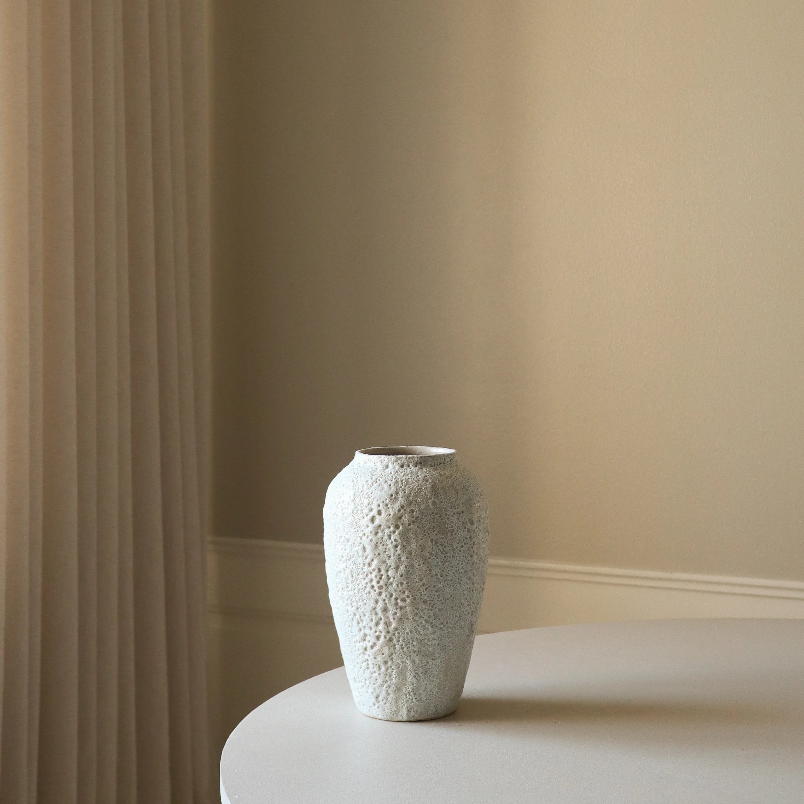 The medium vase strikes a balance between bold design and versatile utility. Perfect for showcasing more voluminous bouquets or as a standalone decor piece, the volcanic texture provides depth and visual intrigue.