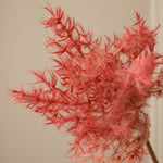 This Red Cotinus Coggygria Young Lady Flower has a soft, feathery texture in a rich red shade with subtle pink undertones. The stem is light brown with a smooth finish, providing a natural look and sturdy support. The height of the stem is 65 cm.
