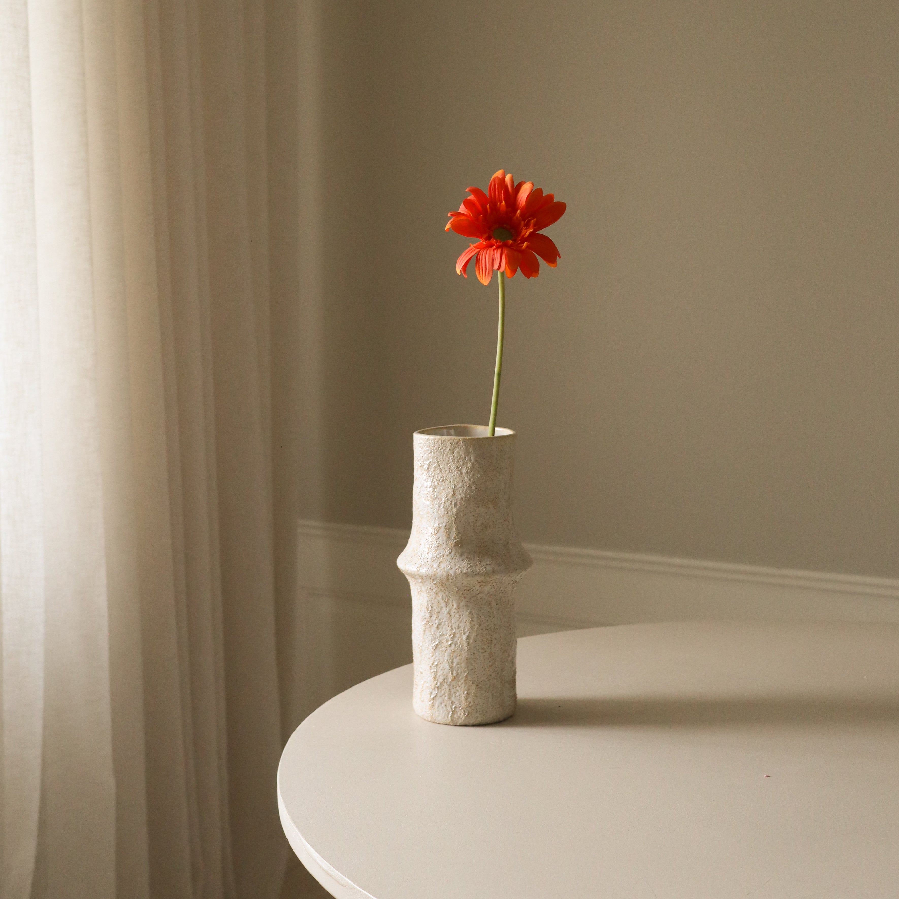 The Ceramic Earth Vase featured in the image measures 30.5 cm in height and 10 cm in diameter.