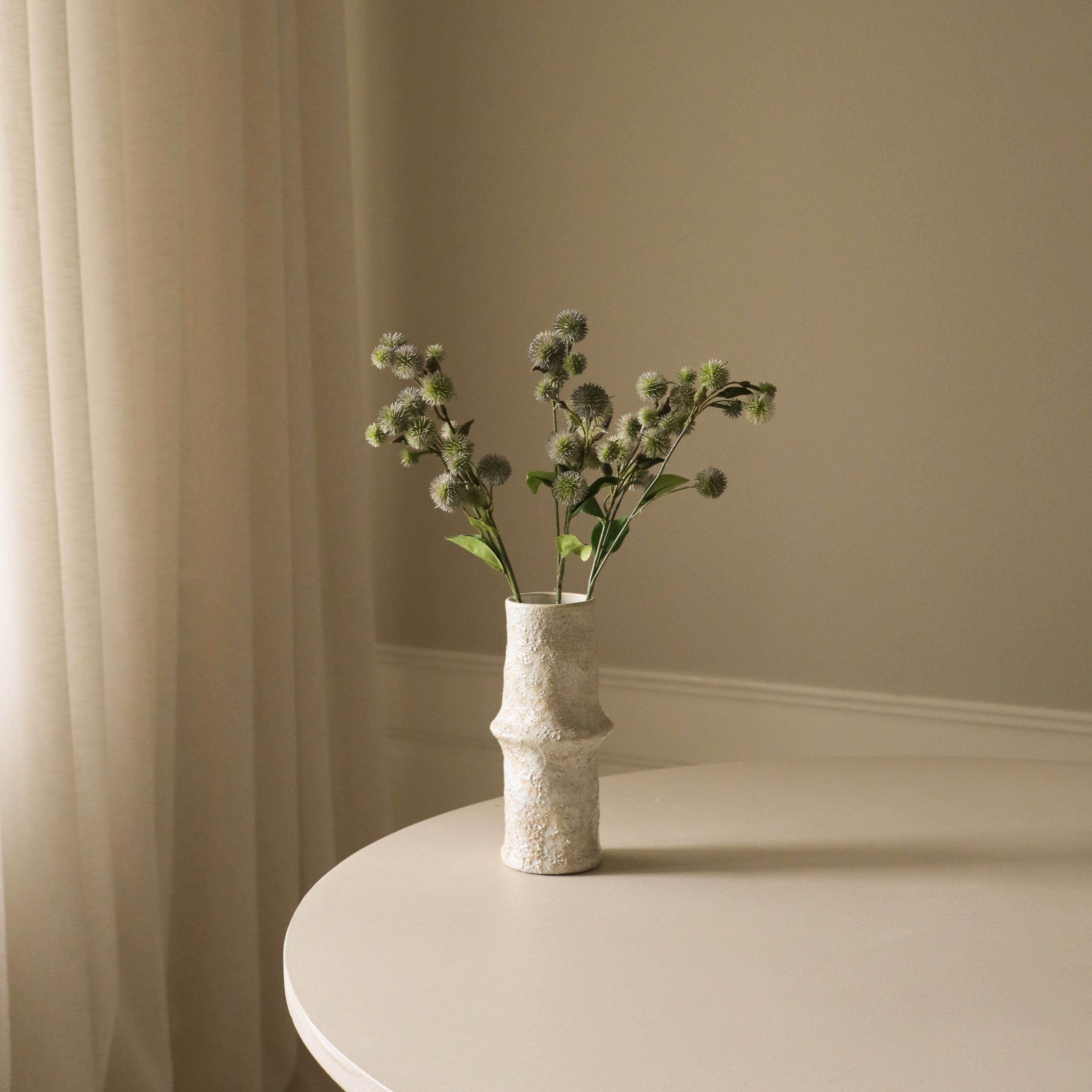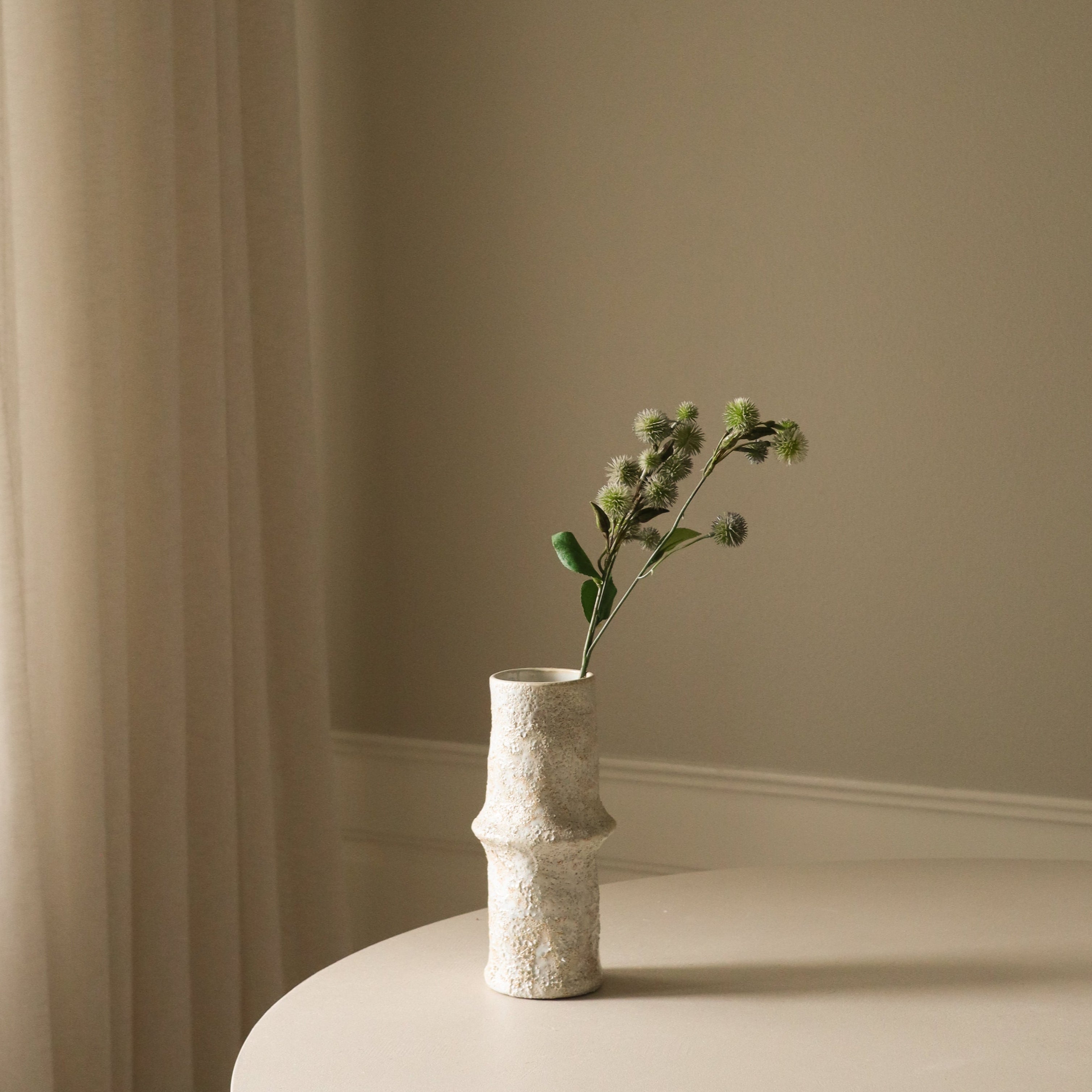 The Small Ceramic Earth Vase featured in the image measures 24,5 cm in height and 8 cm in diameter.