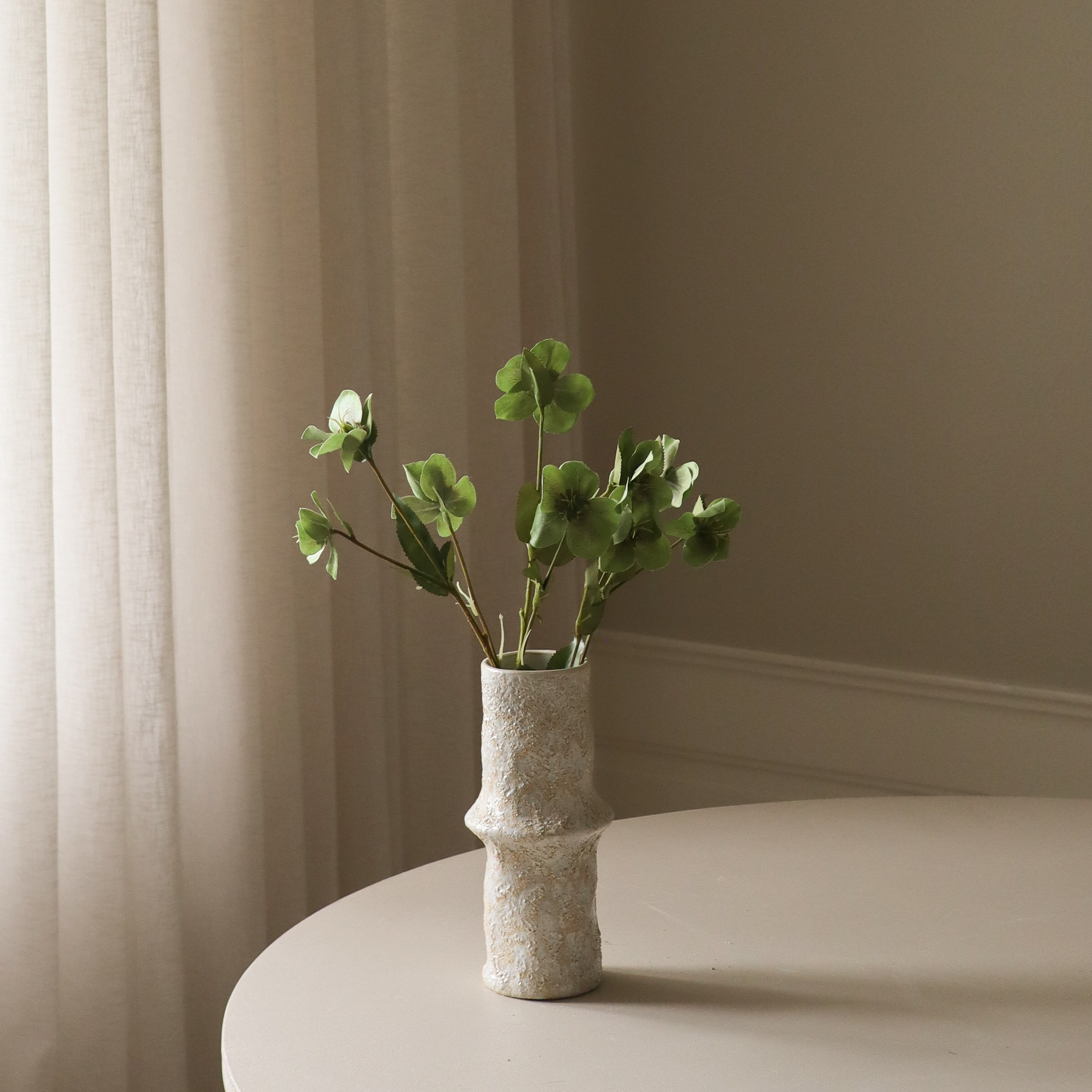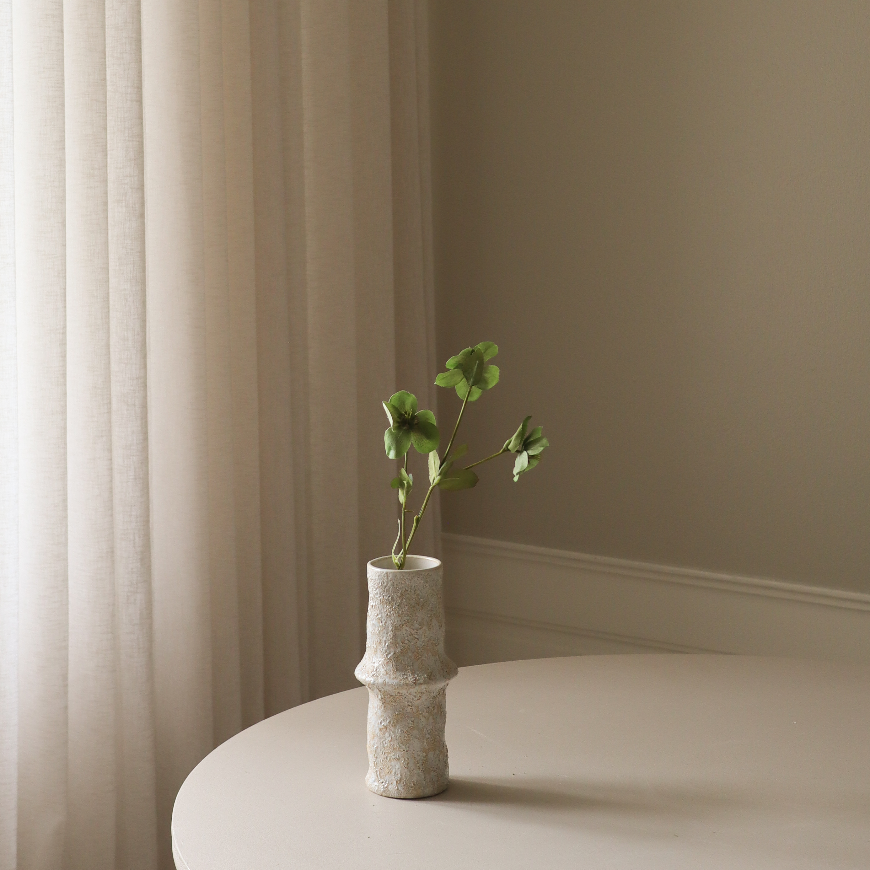 The Small Ceramic Earth Vase featured in the image measures 24,5 cm in height and 8 cm in diameter.