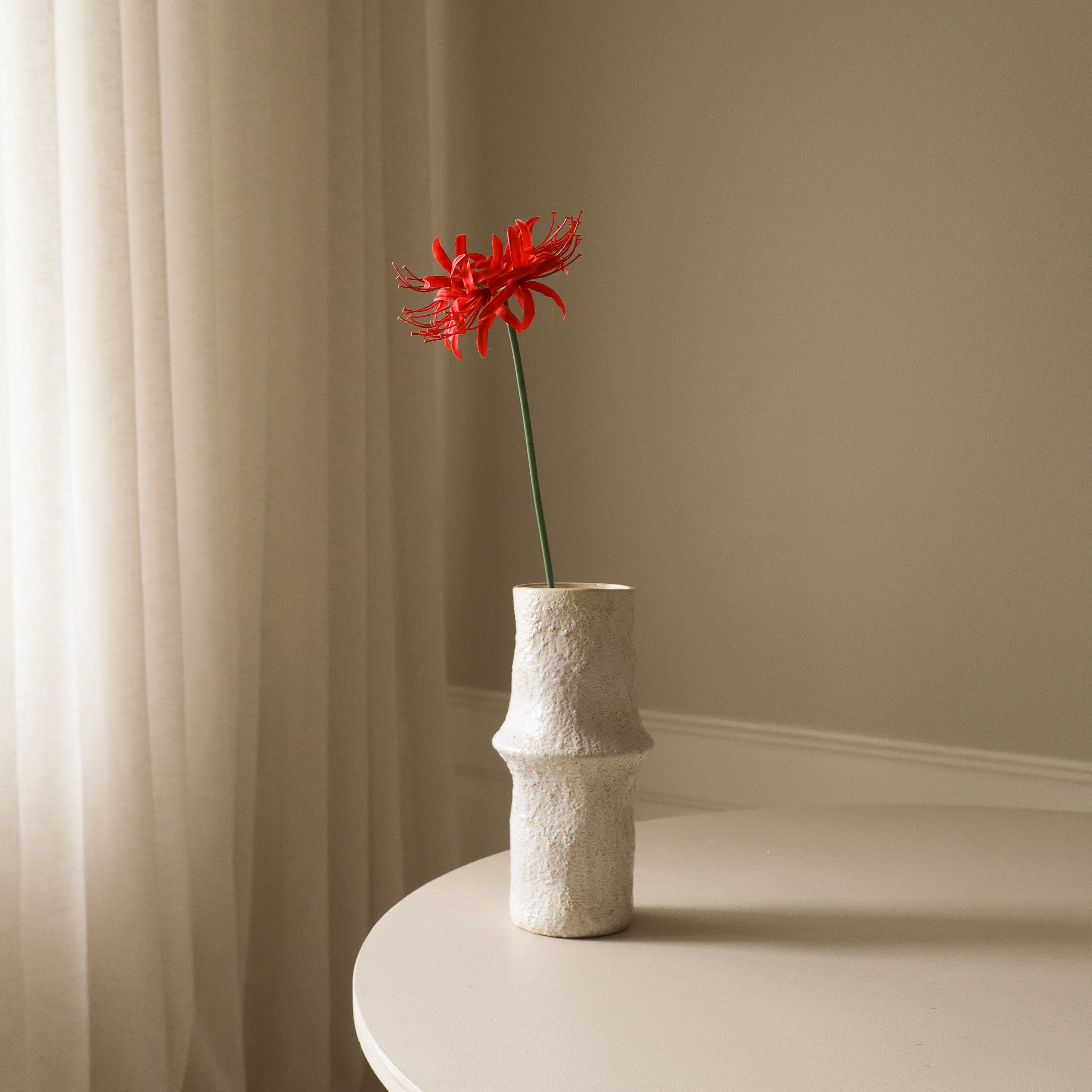 The Ceramic Earth Vase featured in the image measures 30.5 cm in height and 10 cm in diameter.