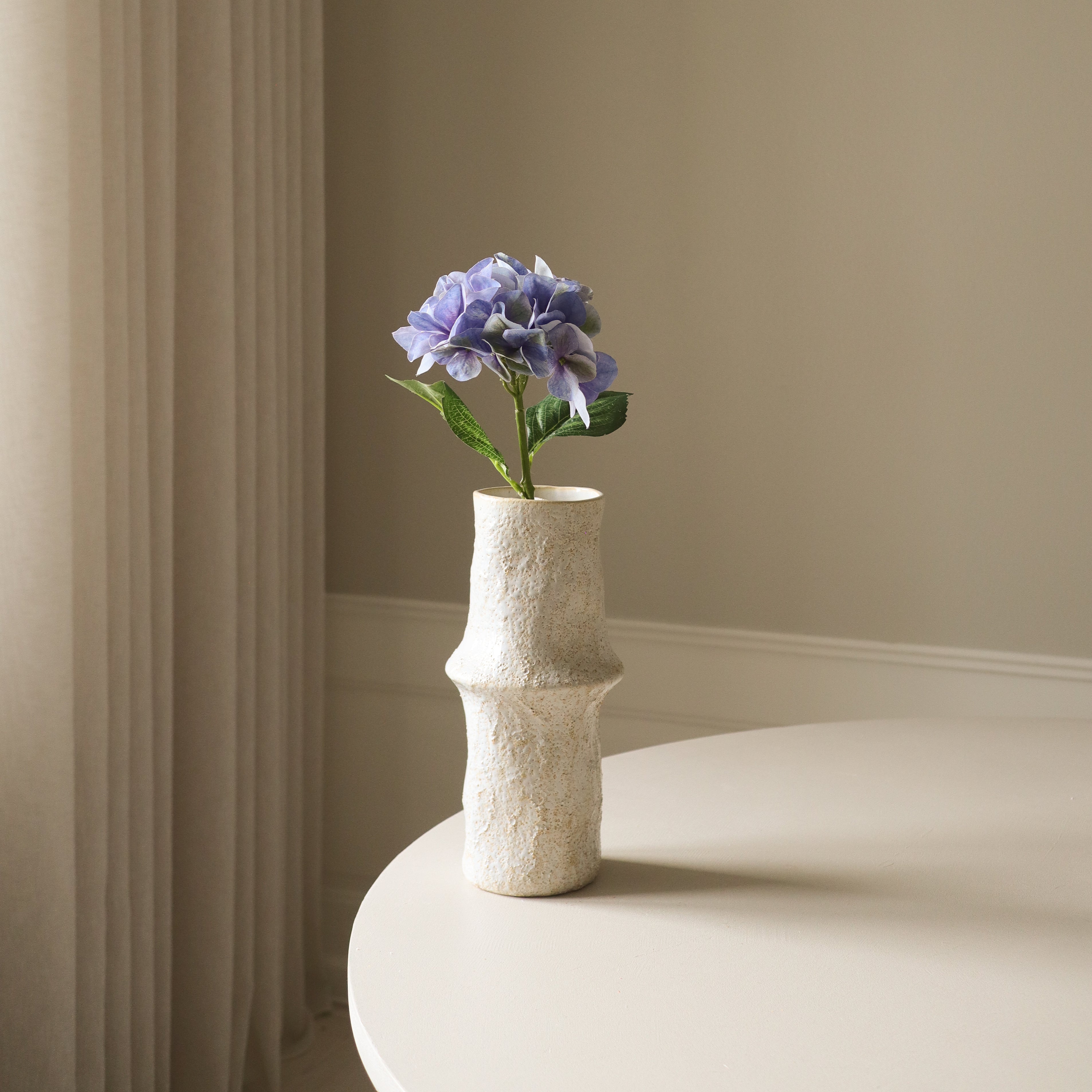 The Ceramic Earth Vase featured in the image measures 30.5 cm in height and 10 cm in diameter.