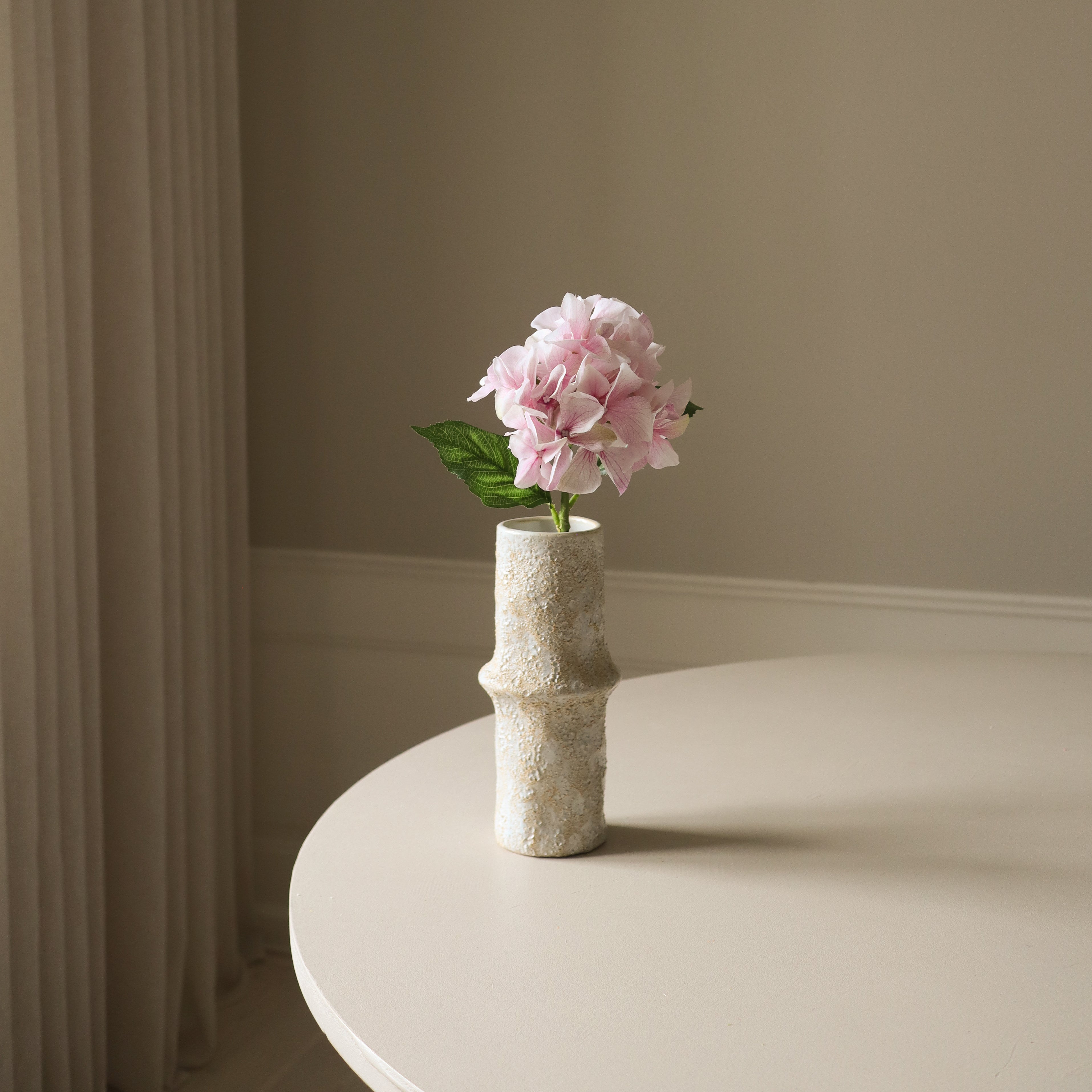 The Small Ceramic Earth Vase featured in the image measures 24,5 cm in height and 8 cm in diameter.
