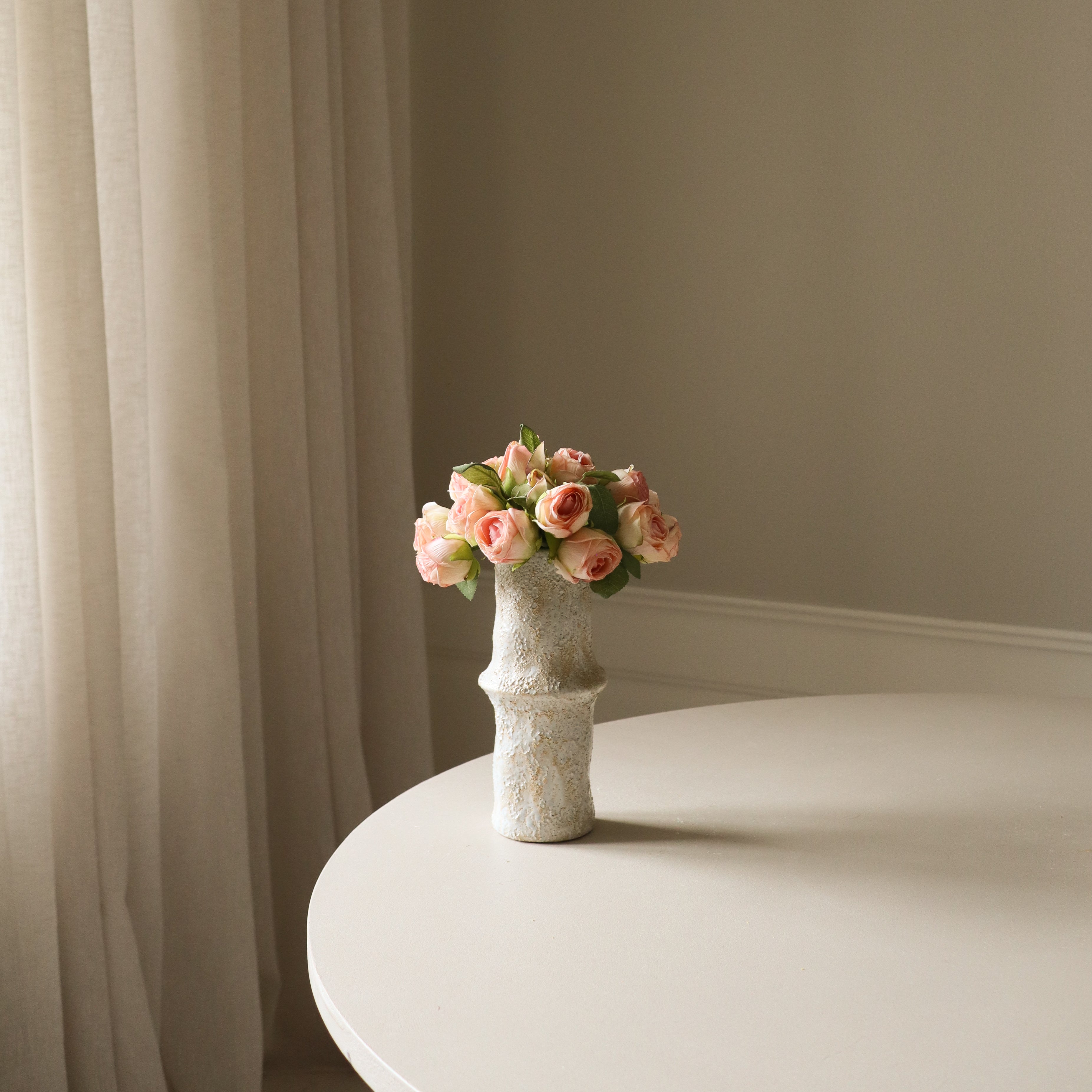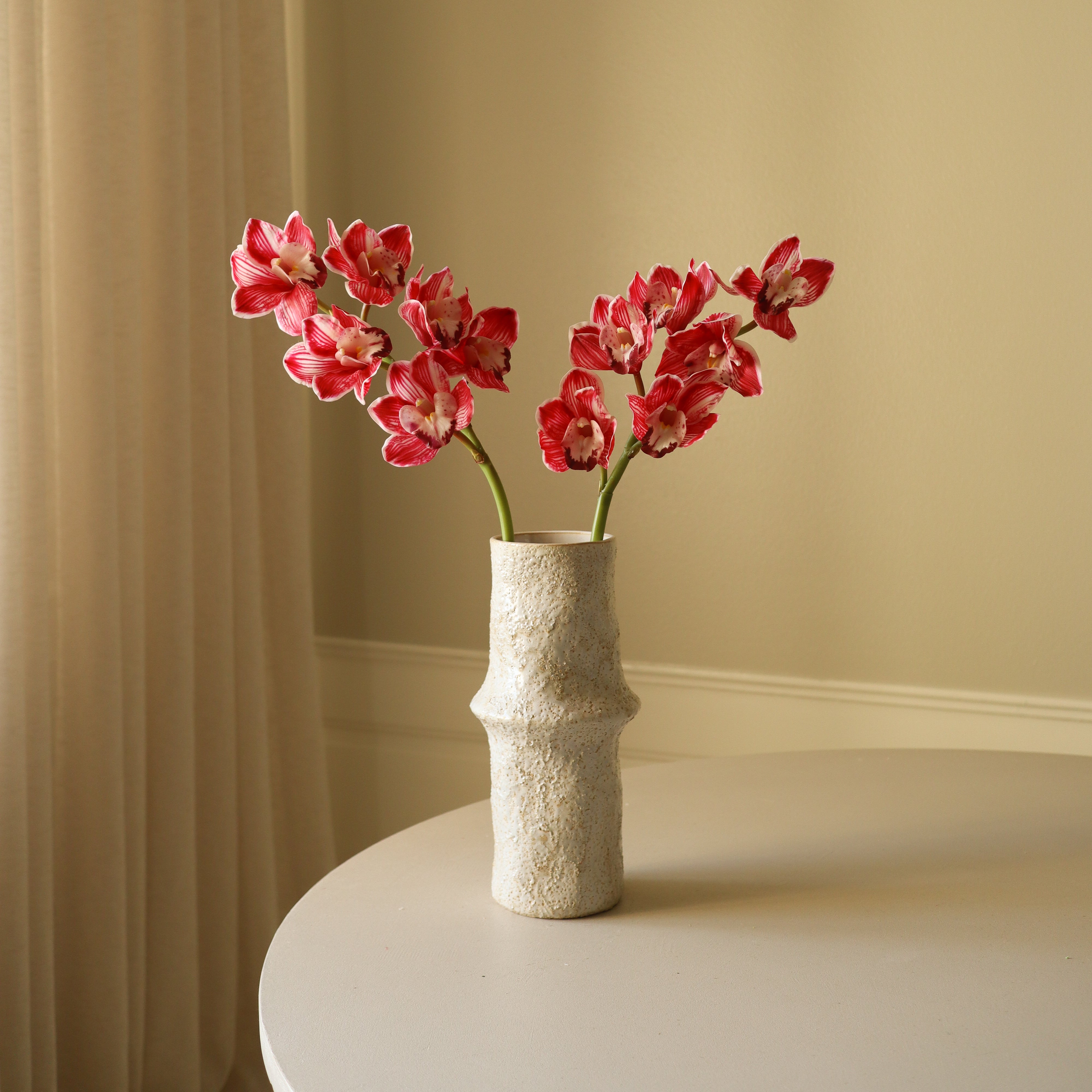 For a more customized fit, trim the stems with cutting pliers as needed. If placing the flowers in a transparent vase, we recommend sealing the cut ends with a glue gun for a polished, natural finish.
