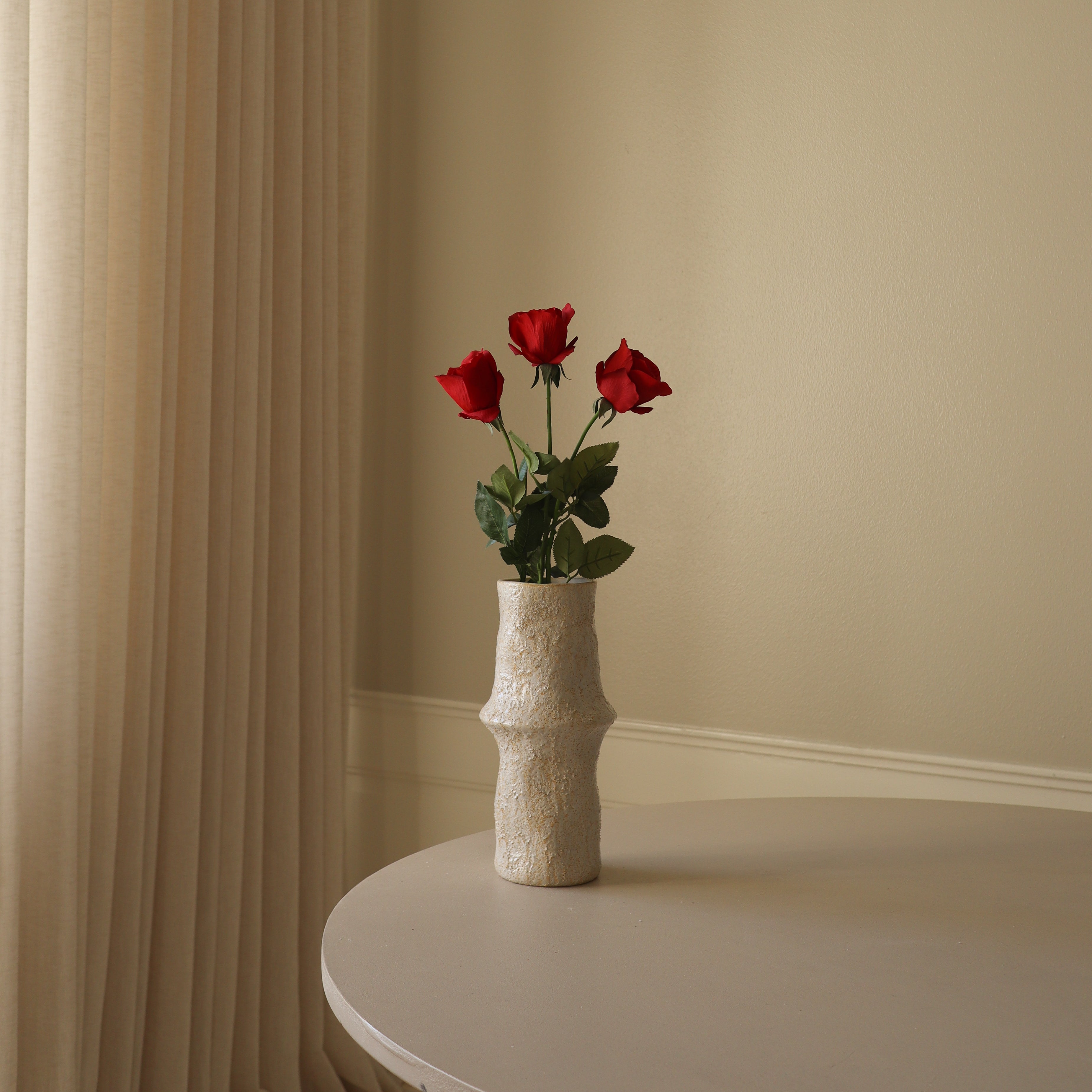 The Ceramic Earth Vase featured in the image measures 30.5 cm in height and 10 cm in diameter.